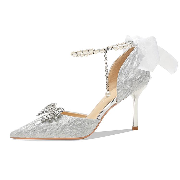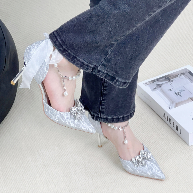 Ainer-cat Ainer cat Slim Heel High Heels 8cm Women's Silver 7 454₽