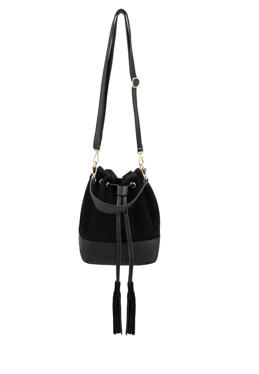 Модная женская сумка-ведро из линии RKO, сочетающая гладкую и замшевую кожу классического черного цвета. Золотистые металлические детали добавляют элегантности и выделяют ее. Средний размер, регулируемый ремешок 130 см и практичный внутренний карман. Стильная, привлекательная сумка, которая идеально дополнит современный городской образ. Страна происхождения: ИталияОтделения: Карман для мобильного телефонаМатериал и уход