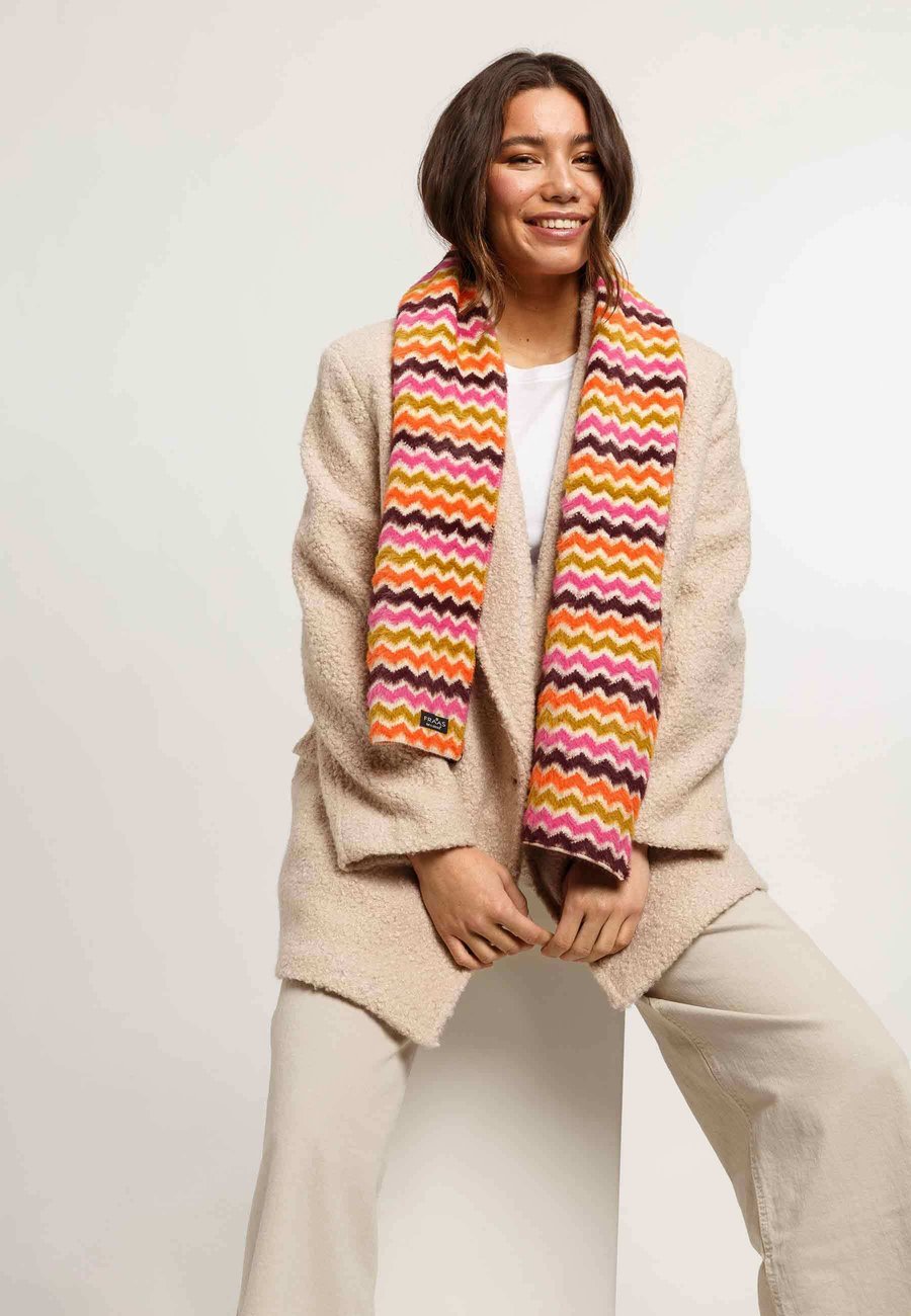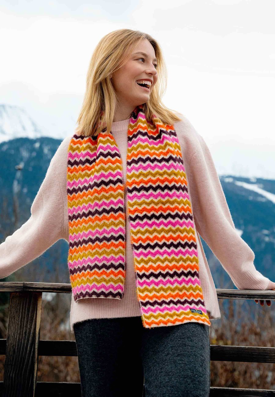 Вязаный шарф в стиле ретро с зигзагообразным узором. Откройте для себя наш вязаный шарф в стиле ретро с зигзагообразным узором (20 x 150 см), который порадует вас своей исключительной мягкостью и пушистостью. Шарф FRAAS из вискозной смеси идеально подходит для холодных дней и может быть стилизован под различные стили - как повседневные, так и более сложные. Носите его свободно на шее или небрежно накинув на плечи, чтобы завершить свой образ! Детали: БахромаМатериал и уход