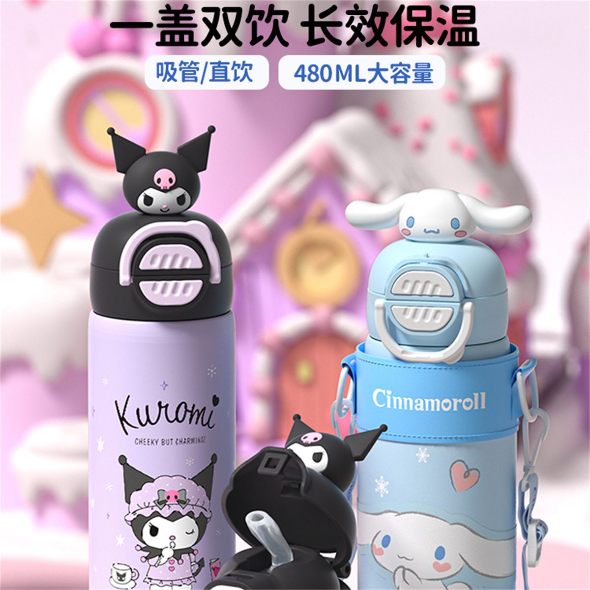 Термостакан Sanrio, large eaкрасный dog dual drinking (includes cup brush+straw brush)