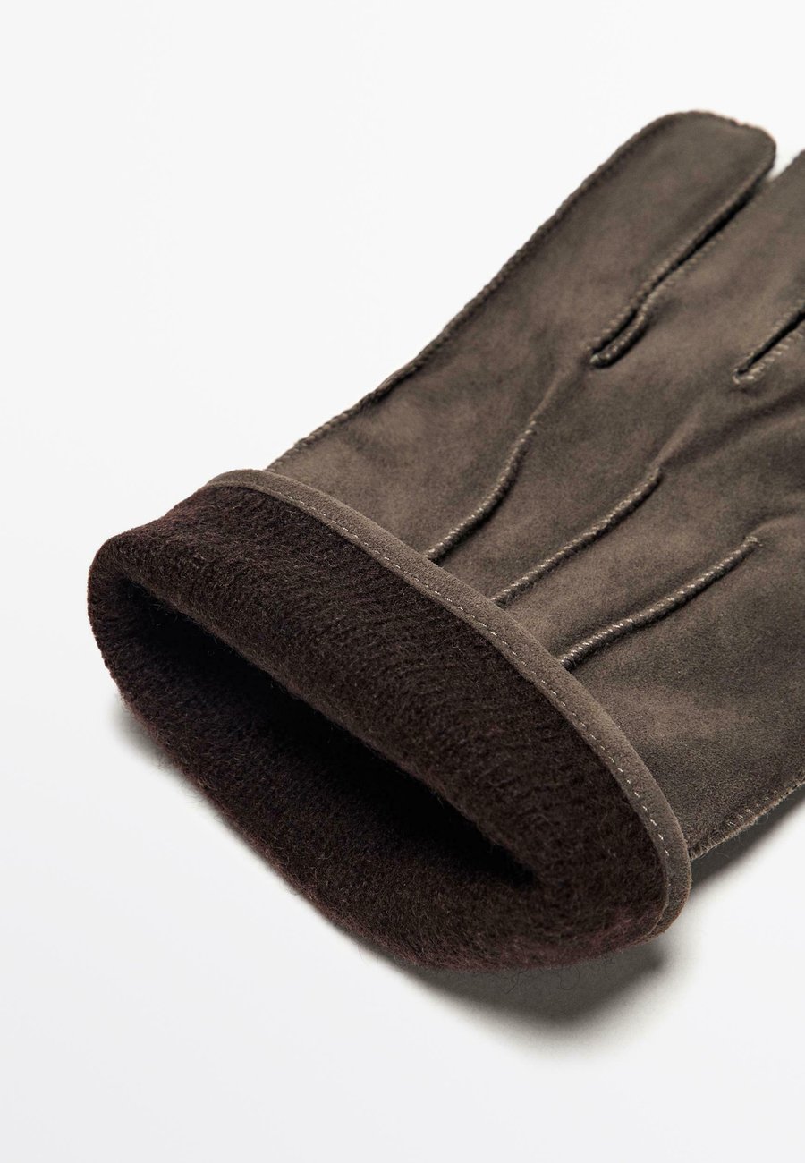 Детали швов. Внутренняя подкладка из 100% шерсти. Перчатки из козьей кожи с замшевой отделкой. Застежка: Эластичная.Материал и уход