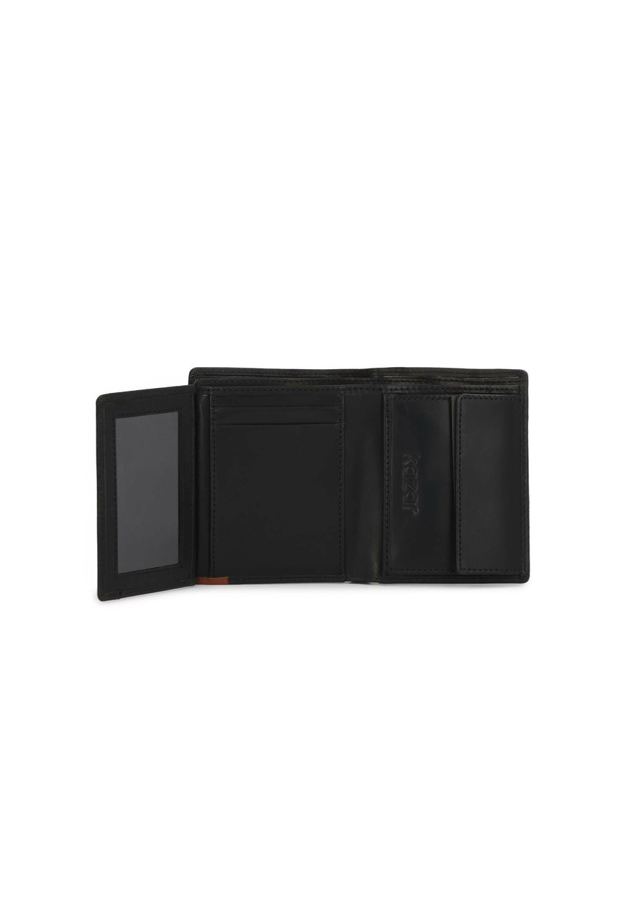 Изысканный кошелек из высококачественной натуральной кожи - это сочетание классической формы и современной функциональности. Глубокий черный цвет кожи тонко разбавлен контрастным акцентом коньячного оттенка. Элегантным элементом является ненавязчиво вытисненный логотип в углу. Модель оснащена технологией RFID, которая эффективно защищает данные платежных карт от несанкционированного считывания. Эргономичное внутреннее пространство позволяет хранить карты, документы и банкноты, обеспечивая полный комфорт при повседневном использовании. Этот кошелек создан для мужчин, которые ценят вневременную элегантность, высочайшее качество исполнения и безопасность в современном исполнении. Отделения: отделение для монетМатериал и уход