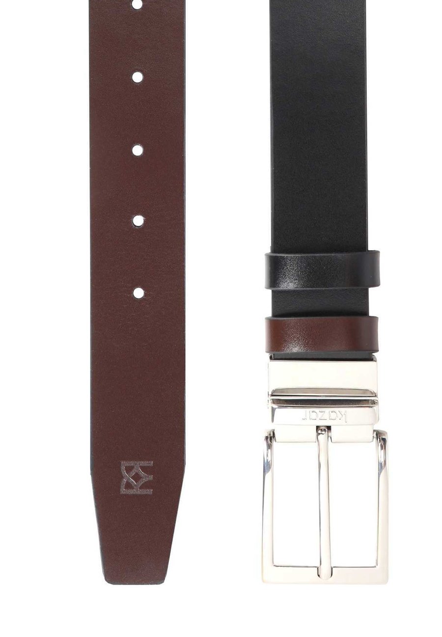Мужской черно-коричневый ремень из высококачественной зернистой кожи. Двусторонняя функция позволяет менять цвет ремня, поворачивая пряжку. Изящный современный дизайн отлично сочетается с различными интересными нарядами. Отличительной особенностью является ультрасовременная пряжка с восхитительно уникальным дизайном. Изготовлен из мягкой, эластичной кожи, легко адаптируется к желаемой форме и размеру. Имеет 5 отверстий, расположенных на расстоянии 2 см друг от друга. Ремень можно укоротить у пряжки.Материал и уход