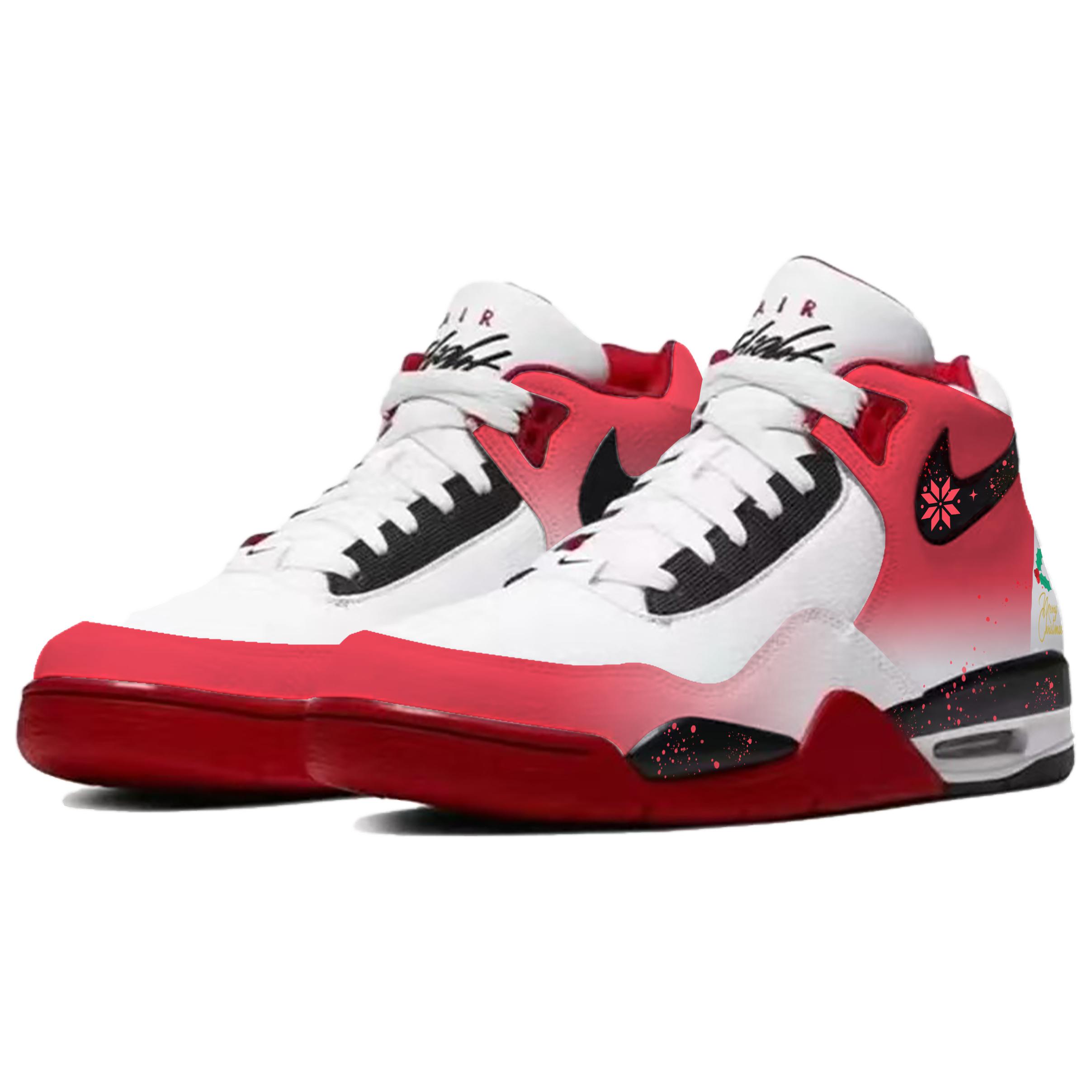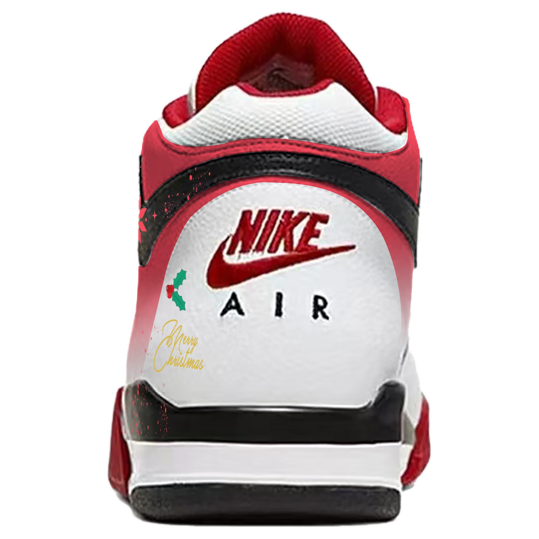 Эти кроссовки с индивидуальным дизайном созданы на основе классических баскетбольных кроссовок Nike Flight Legacy в ретро-стиле с высоким берцем, выполненных в красно-белой гамме унисекс. Рождественские элементы (снежинки, падуб и рукописная надпись «Merry Christmas») гармонично вписываются в дизайн кроссовок, подчёркивая тему, но не перегружая её, создавая праздничную атмосферу. Градиент цвета естественный, а переход от белого к красному добавляет глубины и не позволяет кроссовкам выглядеть монотонно, как в однотонной версии, что делает их подходящими как для праздничного, так и для повседневного ношения.