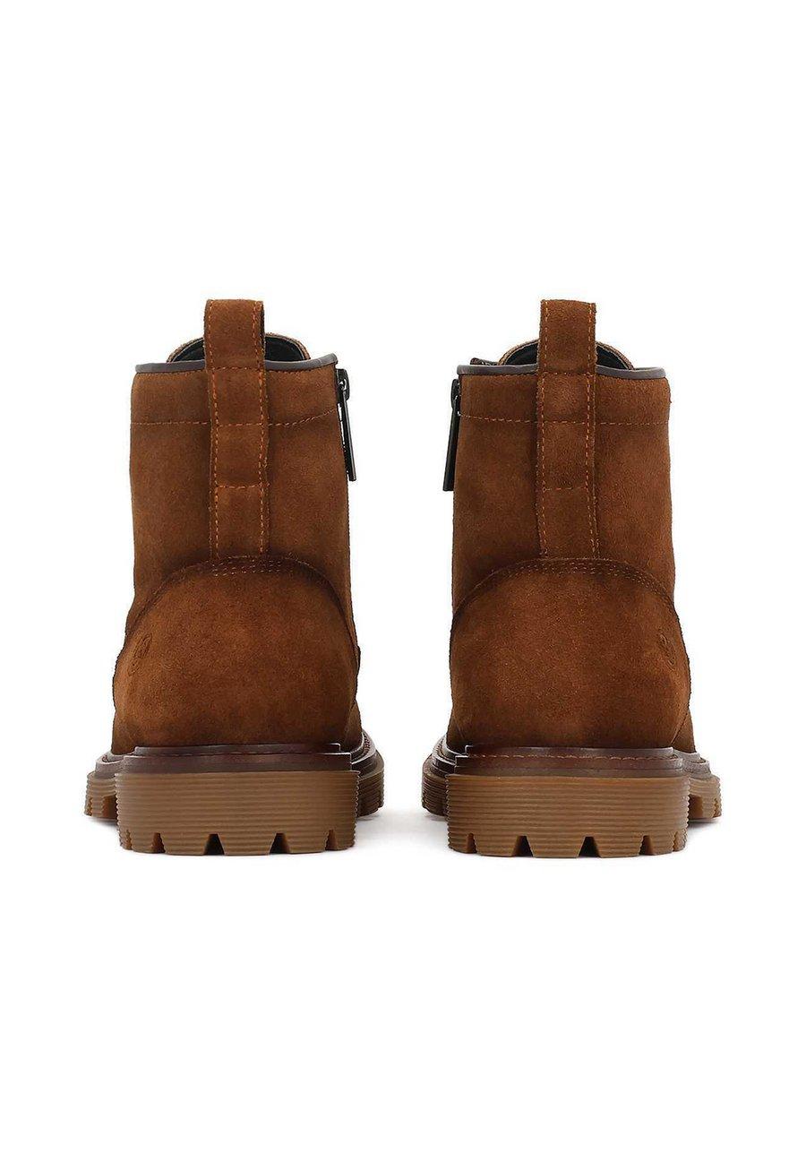 Мужские ботинки из мягкой натуральной замши благородного коричневого оттенка. Классический дизайн на шнуровке дополнен прочной формованной подошвой с выраженным протектором, обеспечивающей сцепление и комфорт на различных поверхностях. Тщательно выполненная прострочка подчеркивает высокое качество изготовления и мастерство модели. Прочные, но элегантные, ботинки подойдут как к повседневному, так и к более элегантному стилю, предлагая стиль и функциональность на самом высоком уровне. Идеальный выбор для мужчины, который ищет сочетание надежного комфорта, вневременного дизайна и престижной отделки. Мягкая подкладка из овчины гарантирует высокий уровень комфорта. Носок обуви: круглыйМатериал и уход