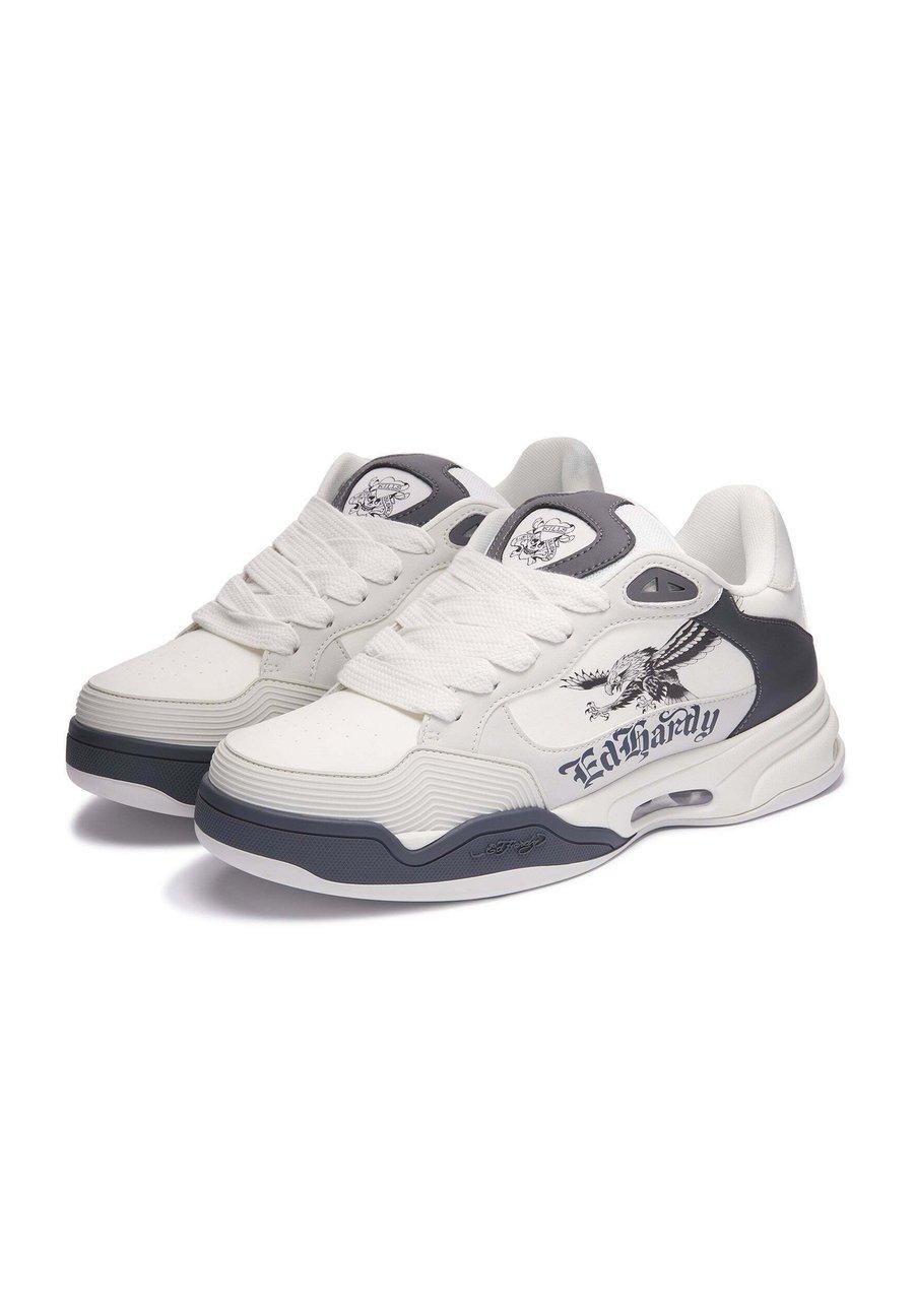 Мужские готические кроссовки-скейтеры "Парящий орел" в цвете экрю/серый. Низкие кроссовки. Яркий графический рисунок орла, а также фирменная надпись бренда. Прочный верх из синтетической кожи и дышащий сетчатый язычок. Сетчатая подкладка обеспечивает быстрое впитывание влаги, сохраняя ноги сухими и прохладными. Резиновая подошва обеспечивает отличное сцепление, амортизацию и долговечность. Тип каблука: круглый.Материал и уход