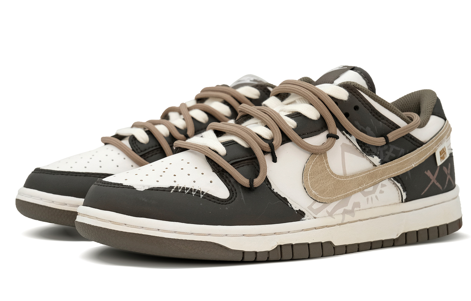 Первоначальной моделью для этой модели, изготовленной на заказ, стали удобные, универсальные, нескользящие и износостойкие низкие кроссовки Nike Dunk белого и серого цветов под номером HF5441-111.