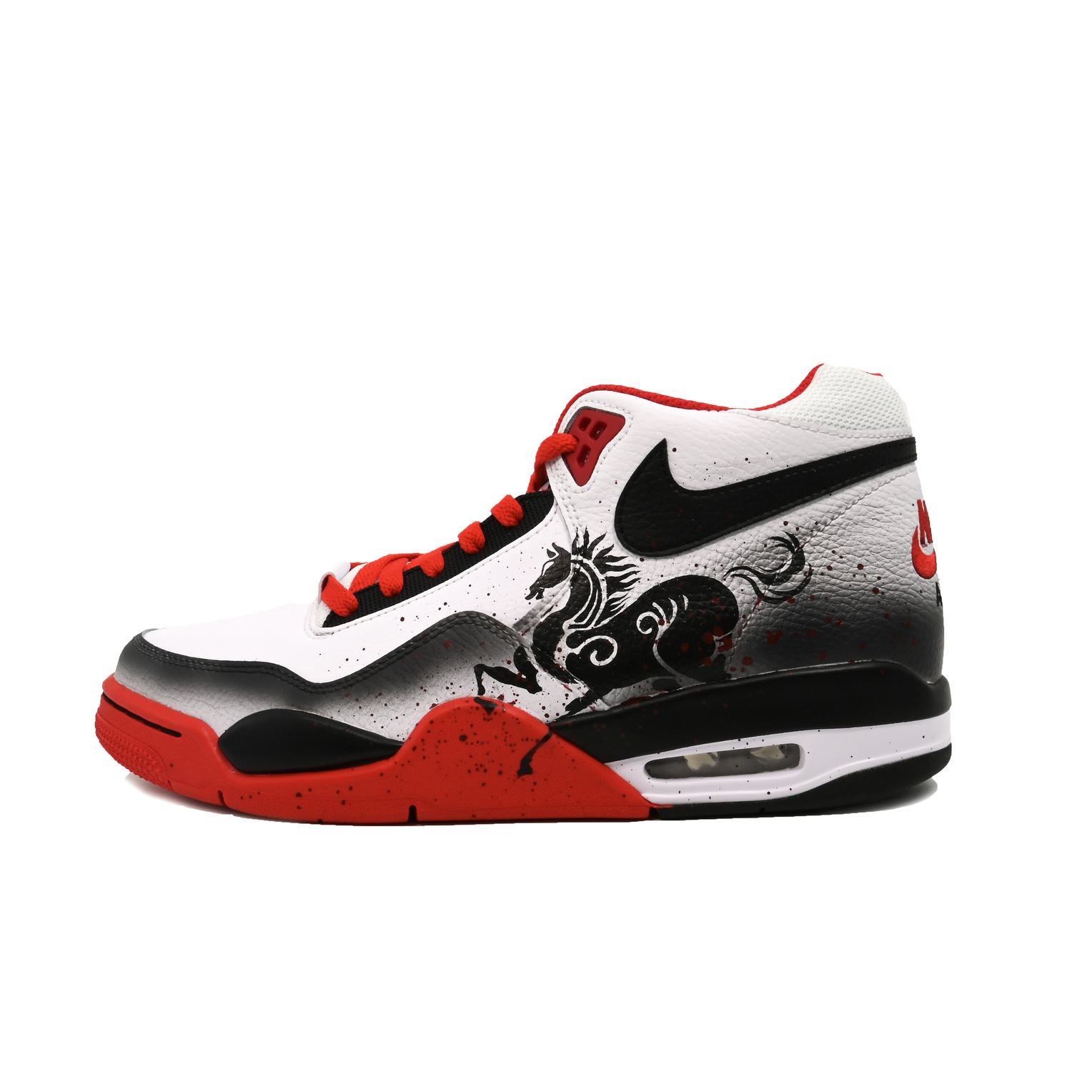 Эти кроссовки созданы на основе классических баскетбольных кроссовок Nike Flight Legacy средней высоты в красно-белой цветовой гамме, унисекс. Основная концепция дизайна - «китайские мифические звери × уличный стиль», что включает традиционный китайский мотив небесного коня в силуэт Nike: чёрно-белые узоры мифических зверей сочетаются с благоприятными текстурами облаков, красно-белая цветовая гамма поддерживает модную узнаваемость кроссовок, а эффект брызг чернил добавляет нотку уличного искусства. Сохраняя спортивную ауру кроссовок Nike, символ благоприятного зверя наполняет кроссовки духом «безграничной свободы», позволяя традиционной культуре укорениться в молодой и модной форме, становясь модным заявлением, сочетающим индивидуальность и культурный резонанс.
