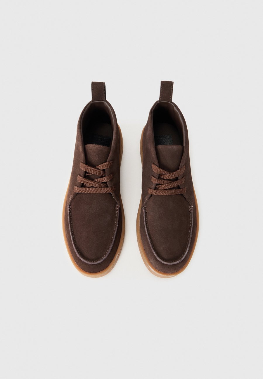 Baseshot Chukka: полувысокие кроссовки, сочетающие классический дизайн со стилем ботинок до щиколотки, замшевый верх, шов "фартук", металлические детали под крокодиловую кожу. Носок обуви: круглый.Материал и уход
