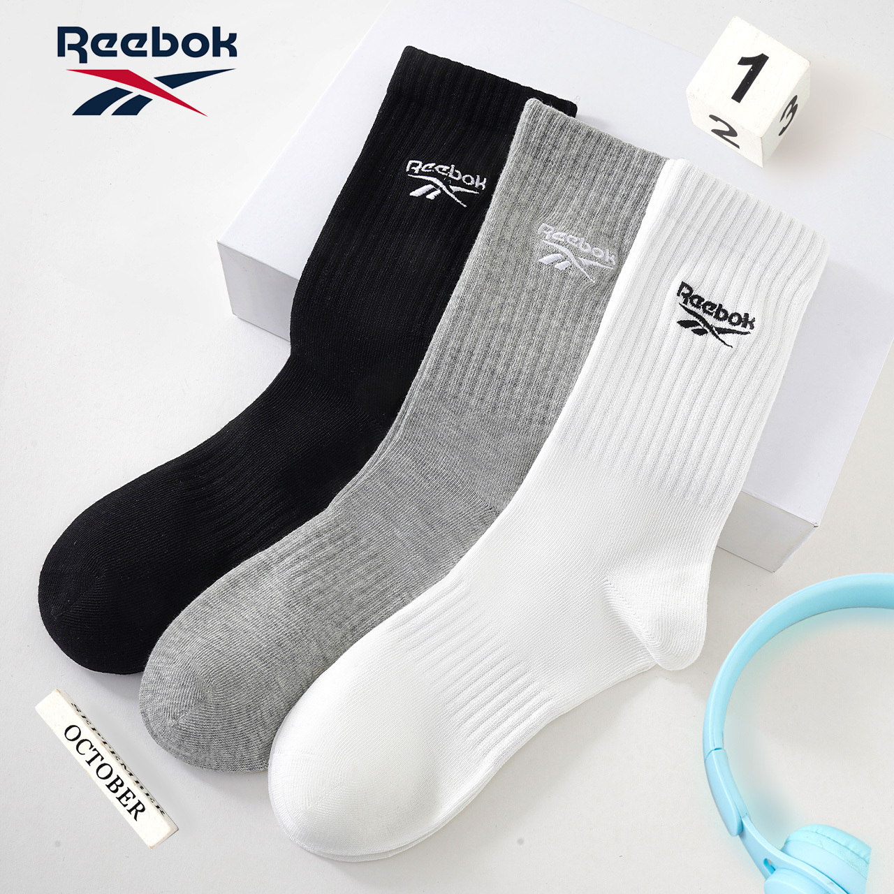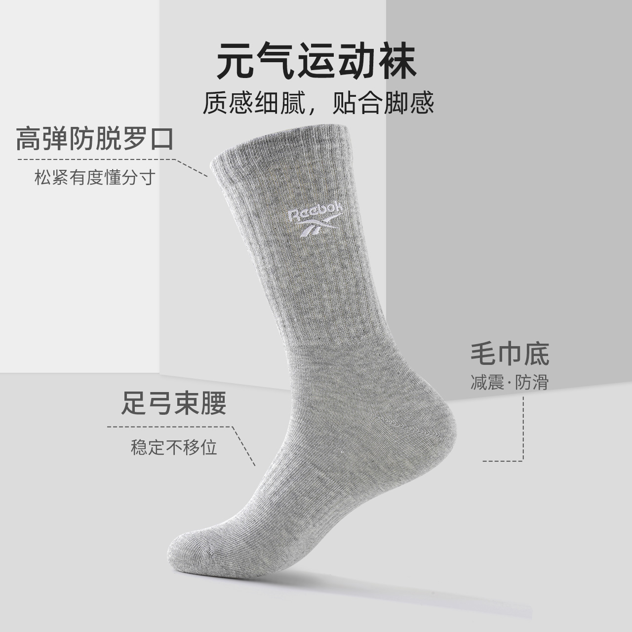 Унисекс носки Crew 5 штук Reebok, 4 pack (белый) heel logo 1 193₽