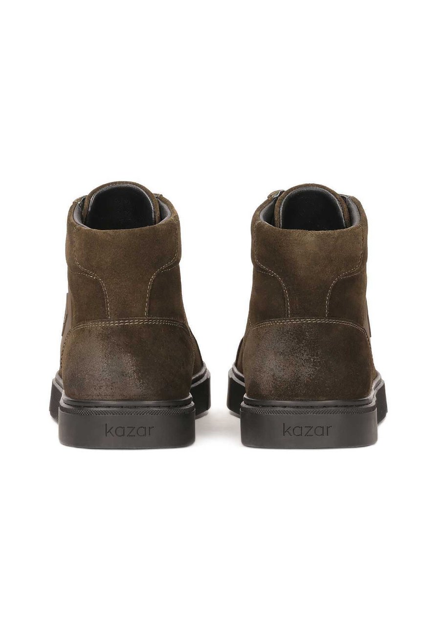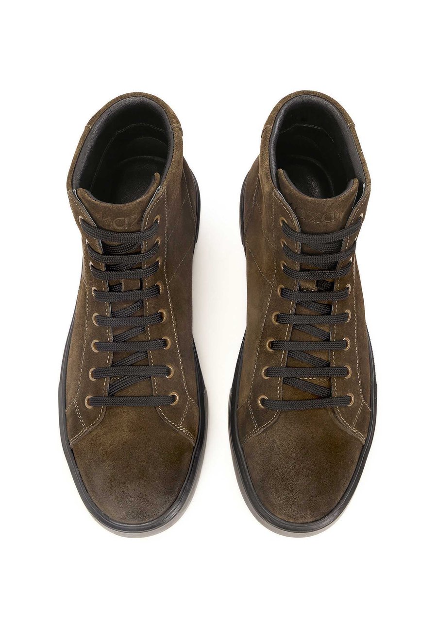 Высокие кроссовки из мягкой замши цвета хаки - стильный выбор, сочетающий в себе повседневный и современный стиль. Классическая шнуровка обеспечивает идеальную посадку по ноге, а высокий, хорошо сформированный верх - дополнительную поддержку и комфорт. Матовая отделка замши приглушенного оттенка хаки придает обуви утонченную оригинальность, идеально вписываясь в городской и уличный стиль. Завершает образ контрастная черная подошва и тисненый логотип, которые добавляют дизайну индивидуальности. Идеальный выбор для любителей повседневного стиля с ноткой спортивной элегантности. Внутренняя часть обуви отделана мягкой овчиной. Носок: круглыйМатериал и уход