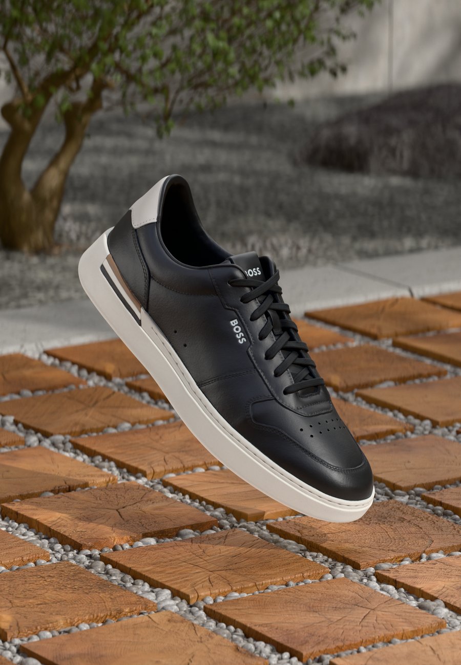 Благодаря резиновой подошве, обеспечивающей отличное сцепление, эти низкие кроссовки BOSS Menswear подойдут к любому образу. Верх из гладкой кожи и фирменные полоски. В этом изделии используется как минимум на 60% более качественное сырье. Мы постоянно ищем более ответственные способы производства и отделки нашей продукции. Минимум 60% кожи, используемой для изготовления этого изделия, получено от сертифицированных кожевенных заводов. Носок обуви: круглыйМатериал и уход