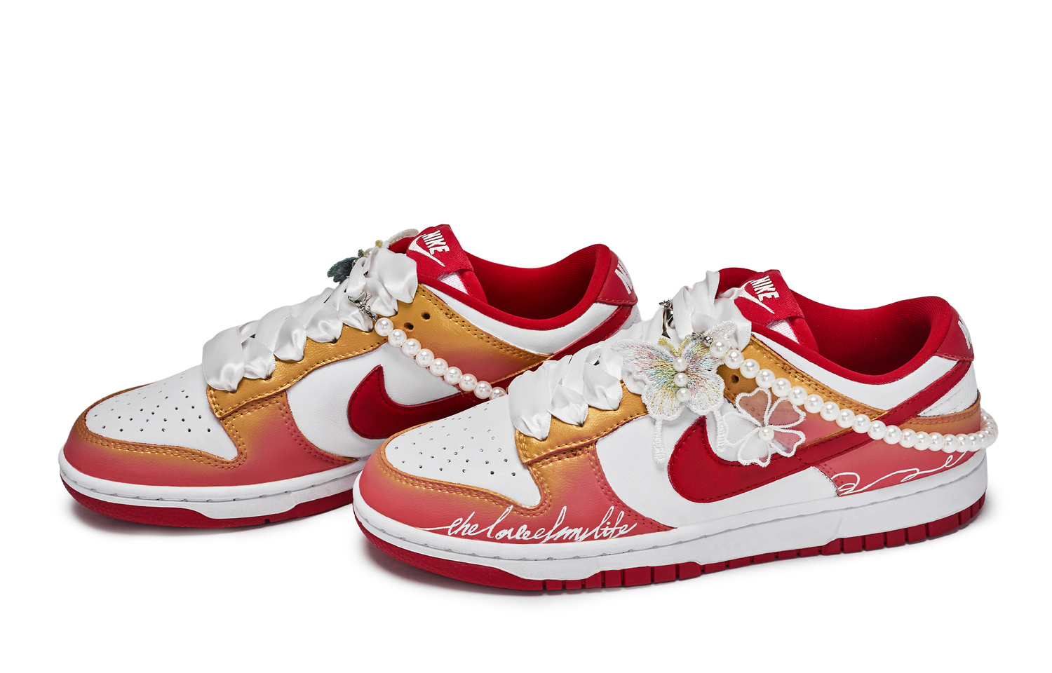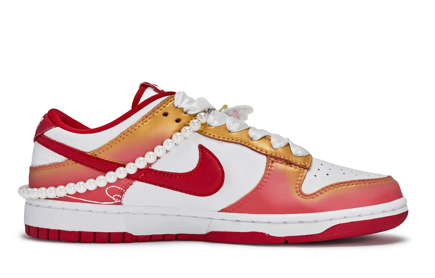 Эти кроссовки изготовлены на заказ на основе оригинальных кожаных кроссовок Nike Dunk Low Retro. Они отличаются удобной, универсальной, тонкой подошвой, нескользящей конструкцией и прочностью. Они представлены в красно-белой цветовой гамме и подходят как мужчинам, так и женщинам.