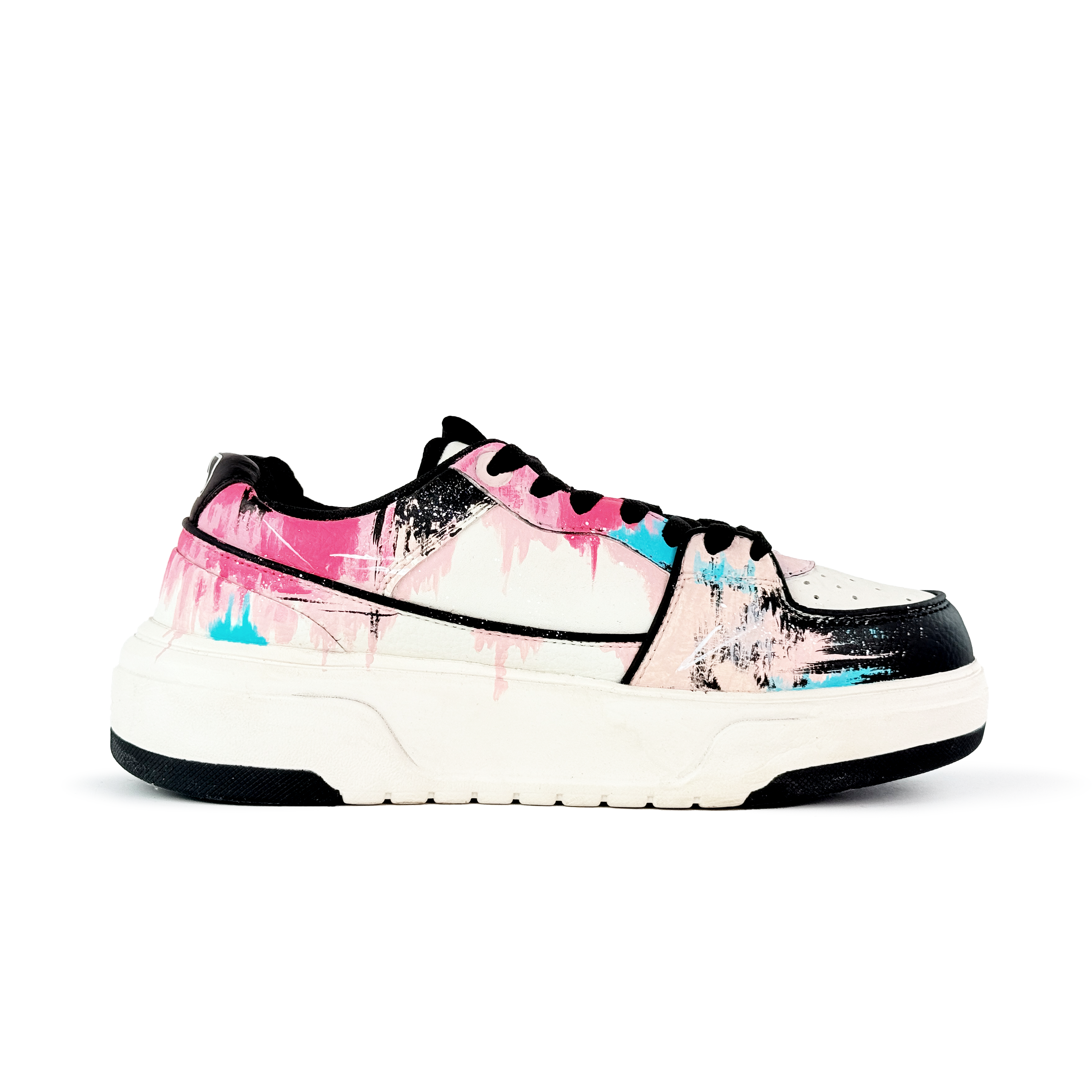 Эти кастомные кроссовки созданы на основе оригинальной модели MLB Chunky Liner с оригинальным артикулом 3ASXCA12N-50WHS. Дизайн основан на милом и стильном уличном стиле с розово-голубыми брызгами граффити и звёздами, создающими модную основу: белый корпус кроссовка - это холст, розово-голубые штрихи напоминают разбрызганную краску, а звёздный узор скрывает милые и стильные детали.