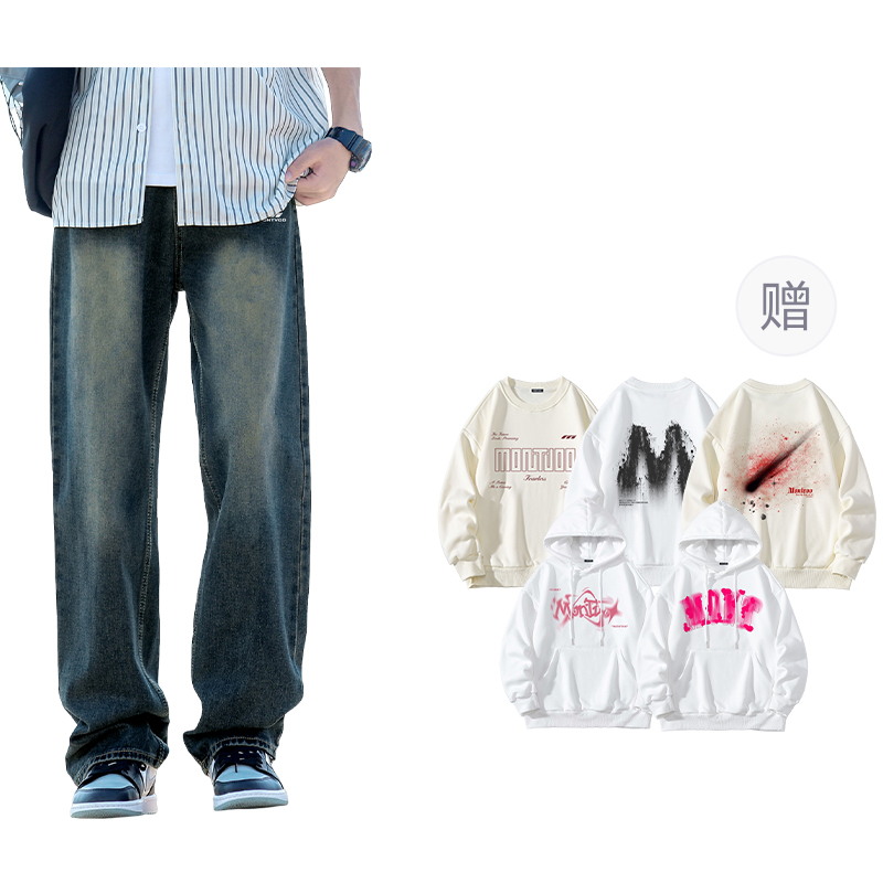 Джинсы унисекс MONTVOO, темно-синий[random comes with sweatshirt]