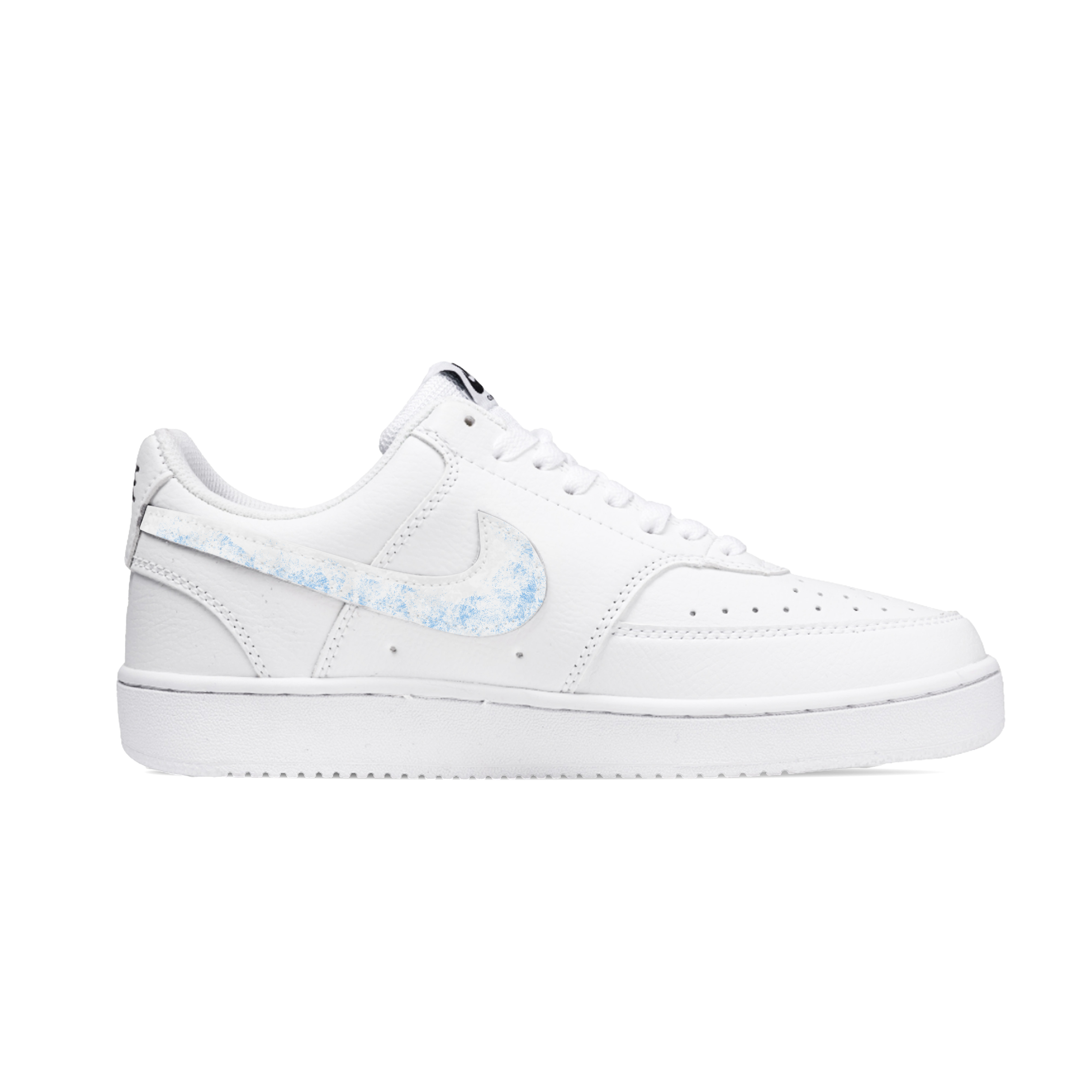 Эти кастомные кроссовки созданы на основе оригинальной платформы Court Vision 1, удобной и универсальной. Дизайн вдохновлён простыми элементами. Вся модель выполнена в белом цвете с мелкими узорами и цветовыми сочетаниями, что делает её контрастной. Модель проста, но не примитивна. Дизайн учитывает повседневную одежду, поэтому общий вид довольно гармоничный.