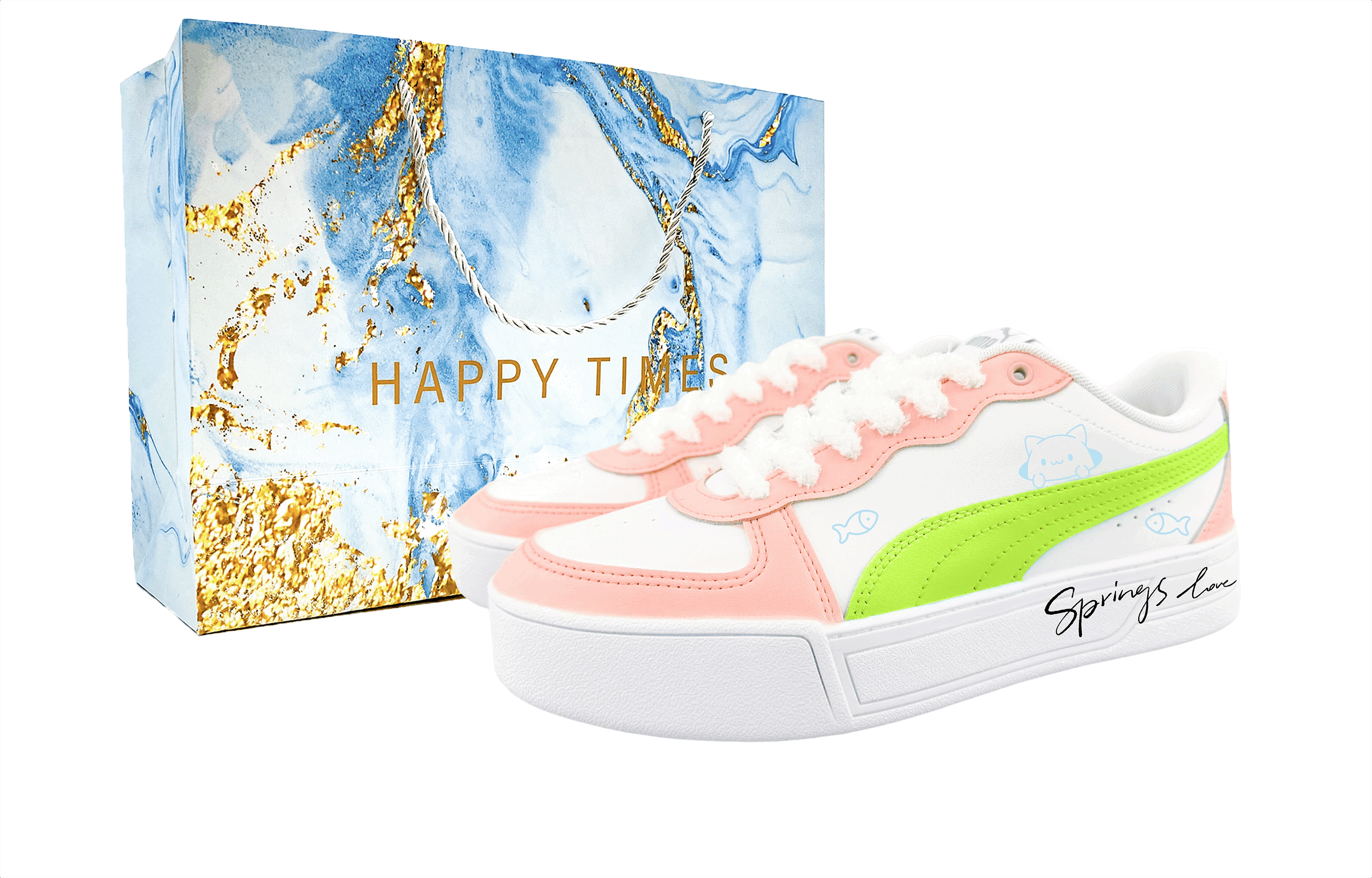 Эти кастомные кроссовки созданы на основе оригинальной модели PUMA Skye - универсальные, удобные и стильные белые кроссовки (легкие, дышащие, с низким верхом, женские) с номером продукта 374764-01.