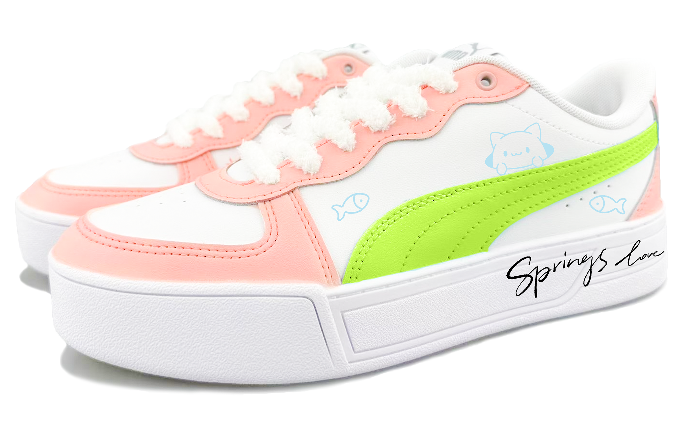Эти кастомные кроссовки созданы на основе оригинальной модели PUMA Skye - универсальные, удобные и стильные белые кроссовки (легкие, дышащие, с низким верхом, женские) с номером продукта 374764-01.