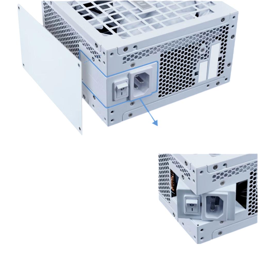 Lian Li решила проблему запутанных кабелей и вариативности в установке. Серия RS выделяется поворотным разъёмом для силового кабеля на 90°. Это не просто дополнительная функция, а значительное улучшение, которое позволяет гибко монтировать блок. Его можно установить стандартно или вертикально, а кабель всегда выходит в нужном направлении, не создавая помех.