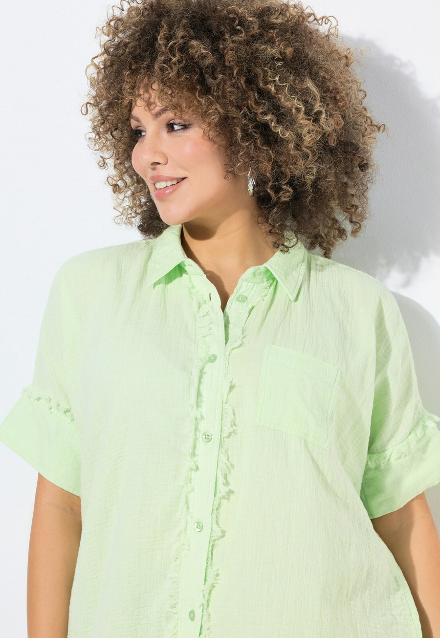 Блуза Ulla Popken FRINGED SEAM SHORT SLEEVE , Calce Chiara/Green