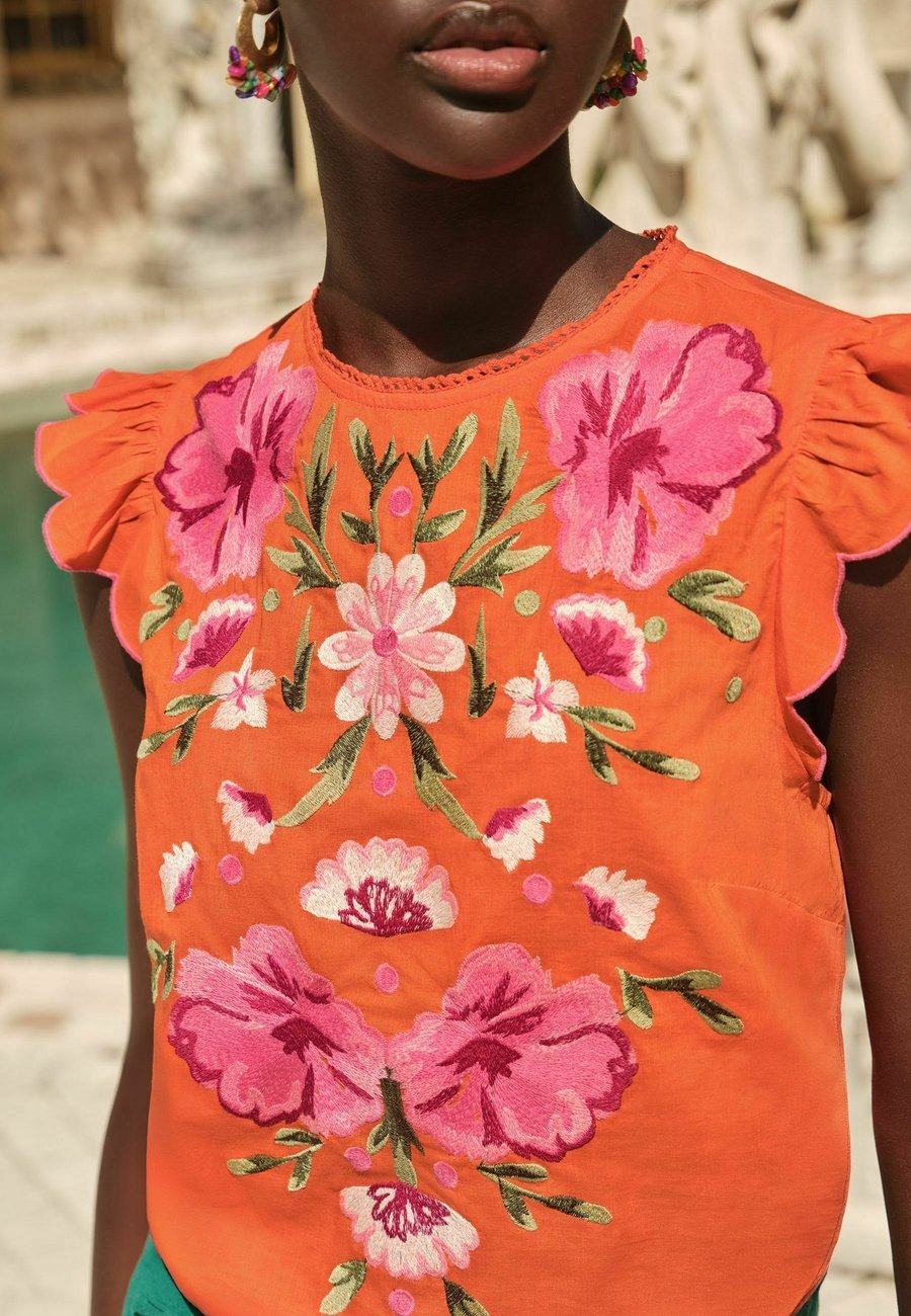 Блуза Love & Roses CREW NECK SHORT SLEEVE EMBROIDERED , Orange