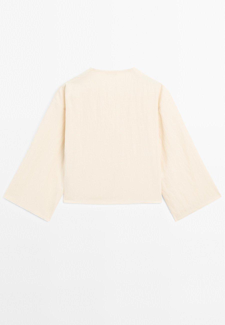 Широкий длинный рукав. Струящаяся блузка. Элегантные серебристые пуговицы со стразами. Круглый вырез. Застежка на пуговицы сбоку. Узор: ОднотонныйМатериал и уход