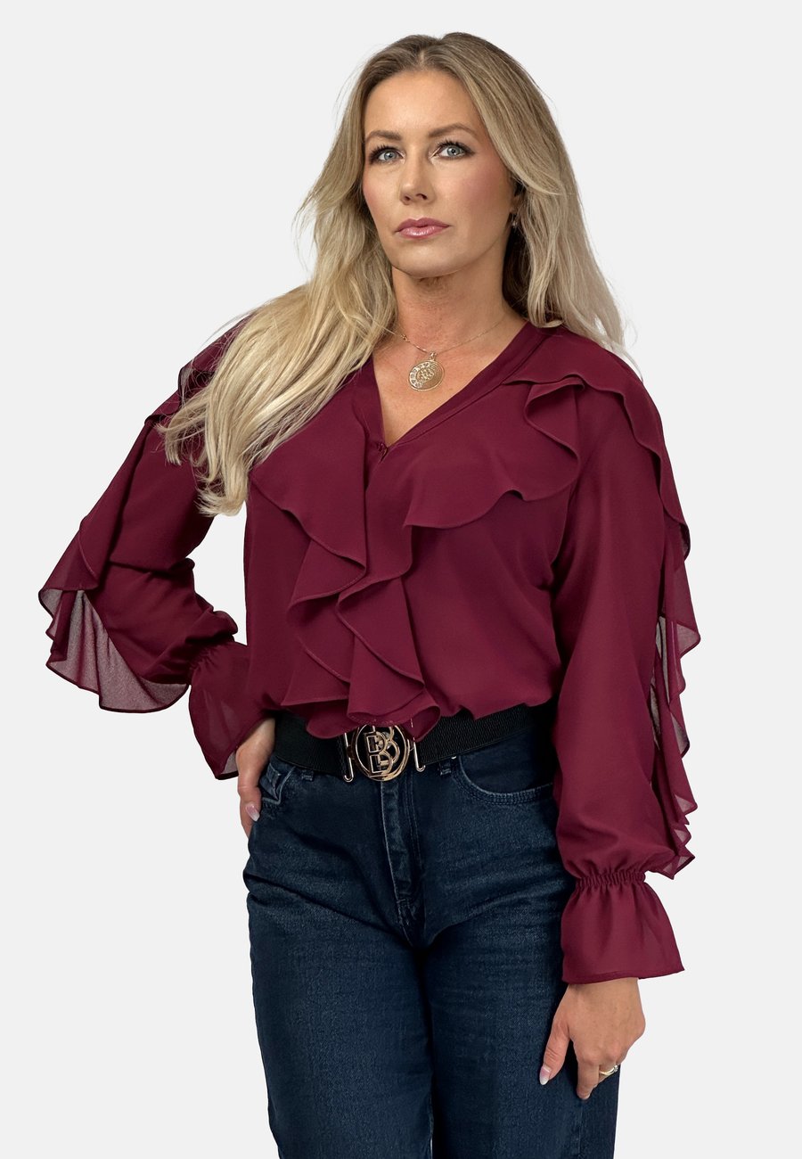 Блуза REGINA FASHION ELEGANT CASCADE RUFFLE, Bordeaux