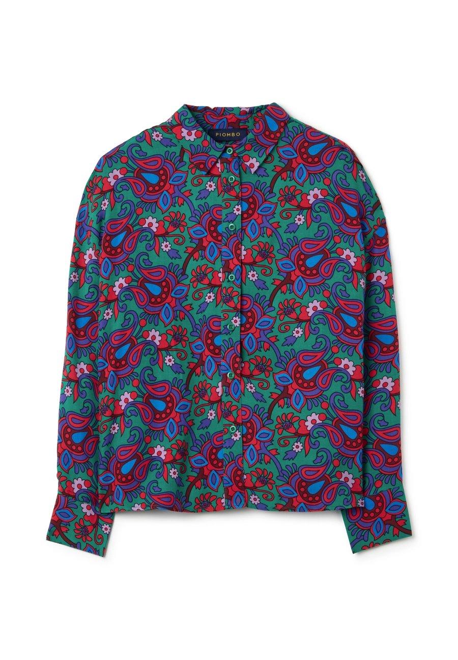 Разноцветная рубашка с цветочным принтом из линии PIOMBO - это универсальная и модная вещь, изготовленная из чистой вискозы для комфортной посадки. Ее яркий и красочный дизайн идеально подходит для того, чтобы добавить немного радости в ваши осенние и зимние образы. Эта рубашка с застежкой на пуговицы и классическим воротником идеально подходит для любого случая, от работы до отдыха. Вырез: ХенлиМатериал и уход