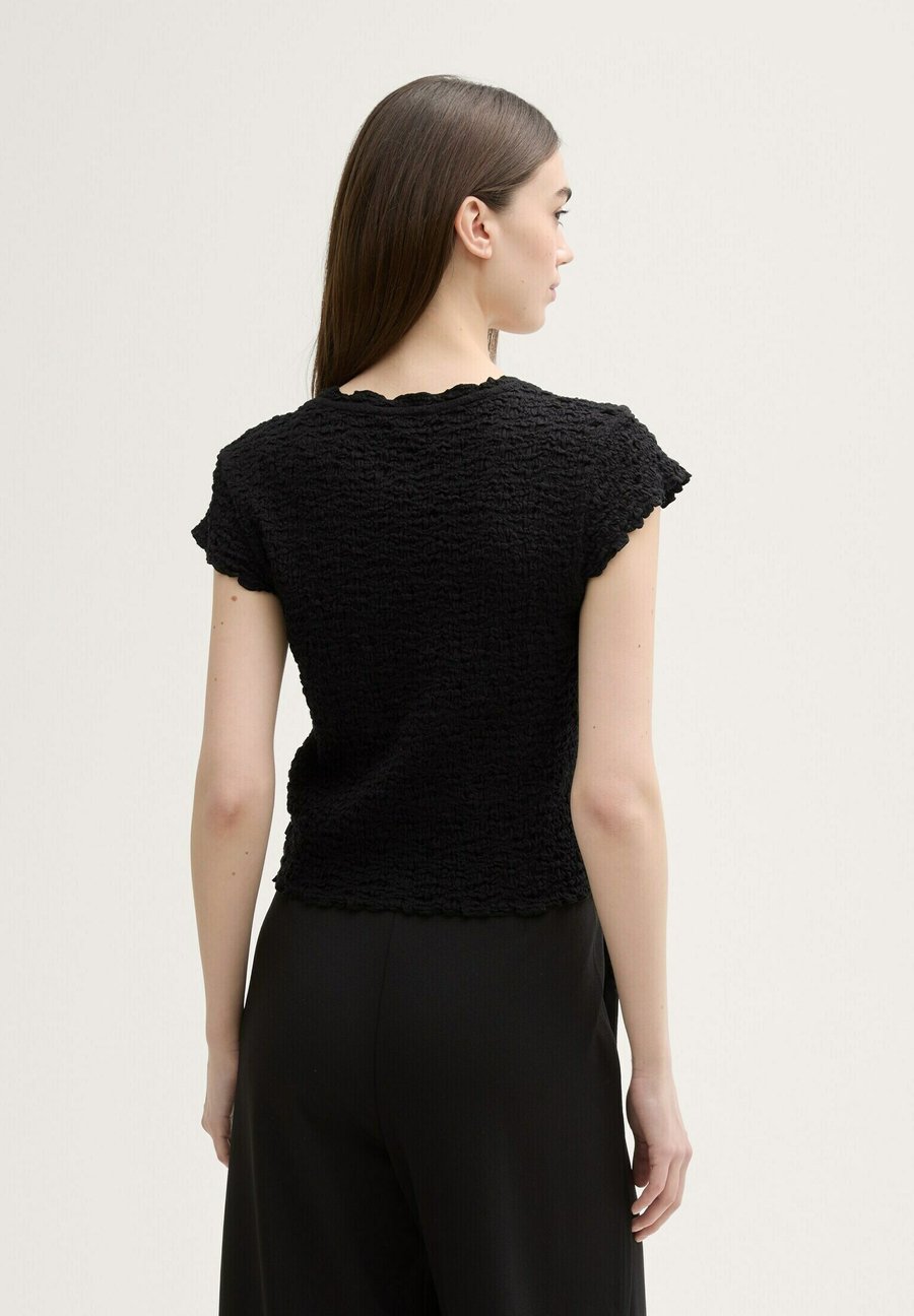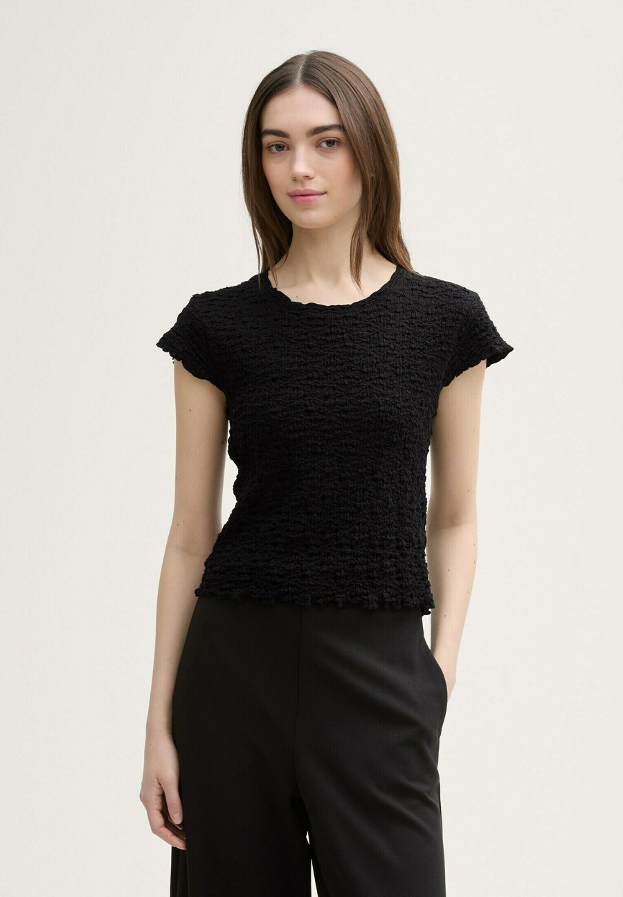 Укороченная блузка с эффектом мятой ткани и фестончатым краем. Вырез горловины: круглый.Материал и уход