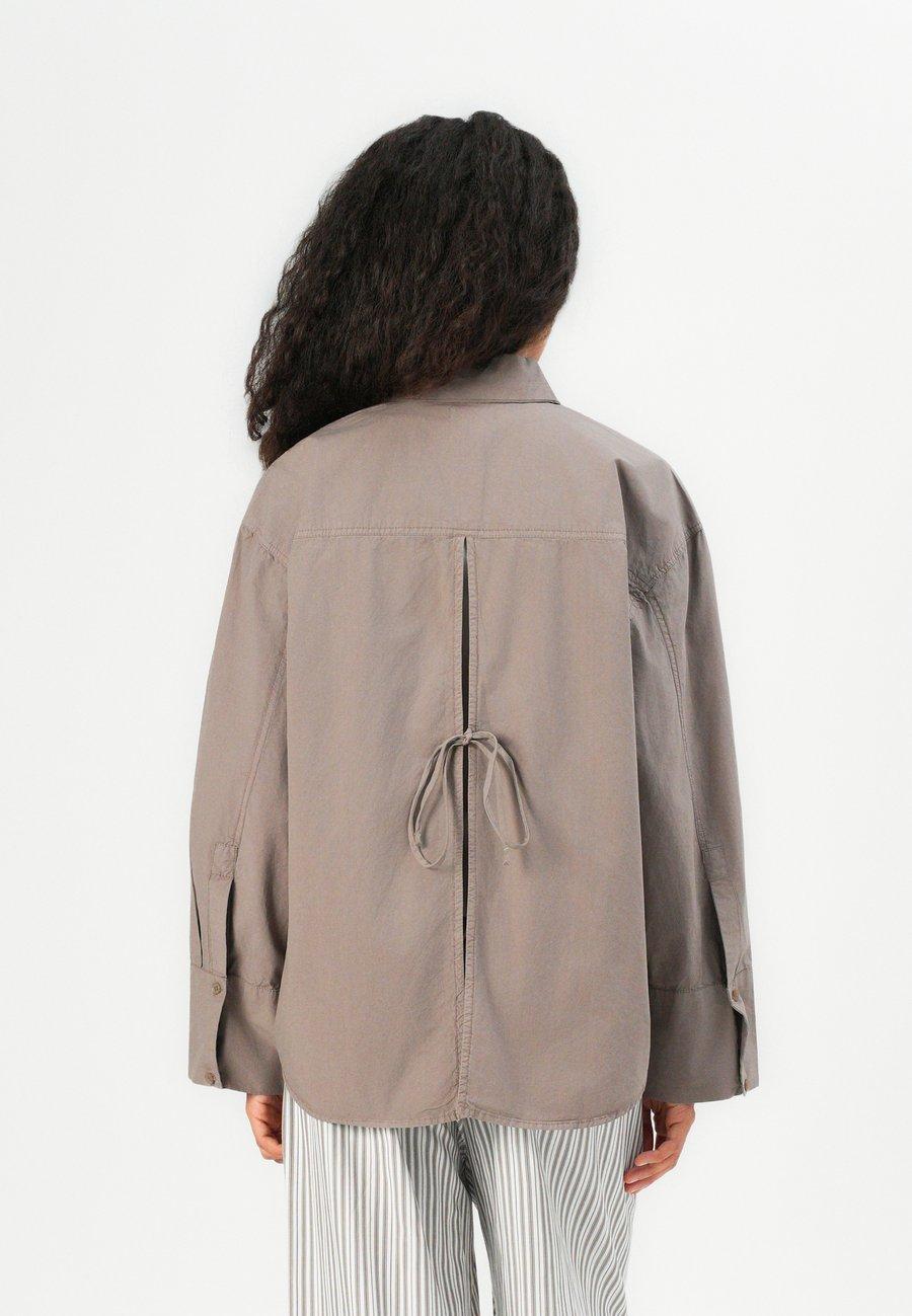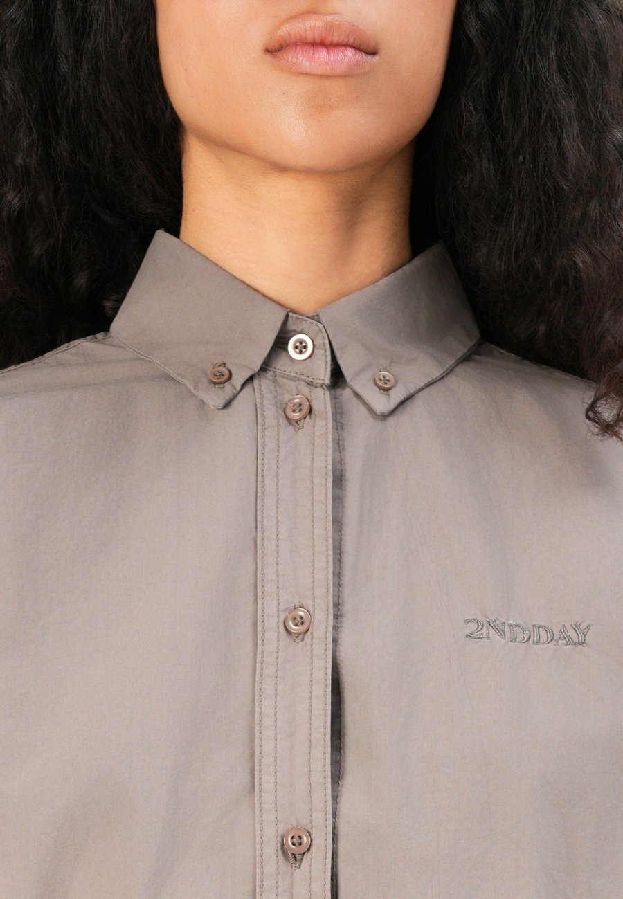 Небольшая этикетка-флажок на уровне груди. Воротник: на пуговицах.Материал и уход