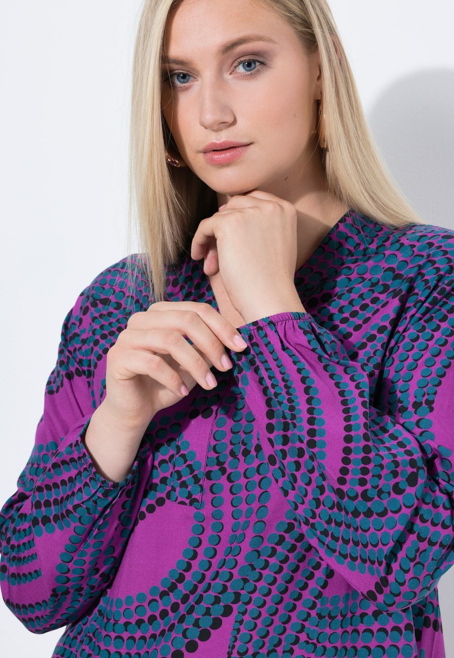 Блуза Ulla Popken WAVE DOT PRINT LONG SLEEVE , Blackberry/Berry