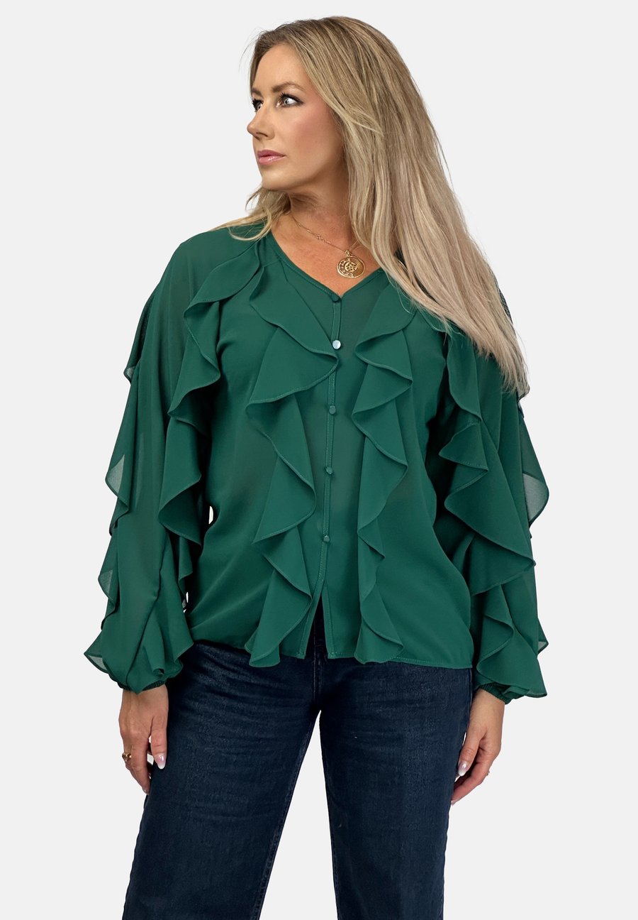 Блуза REGINA FASHION ELEGANT CASCADE RUFFLE, Green