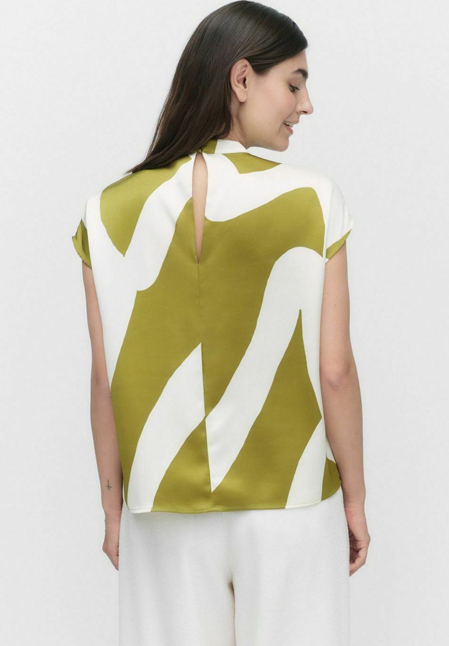 Блузка Koa от Stockh lm Studio - это атласная блузка с короткими рукавами, узором и прямым кроем. Застежка-молния сзади. Доступна в двух цветах. Сочетается с юбкой Koa. Воротник: Воротник-стойкаМатериал и уход