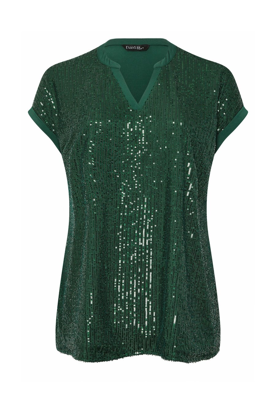 Топ с пайетками больших размеров - Вырез: Низкий V-образный вырезМатериал и уход
