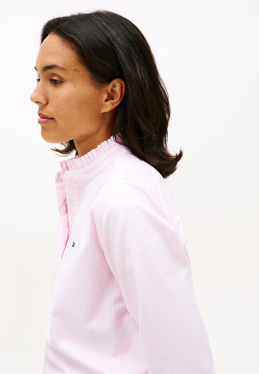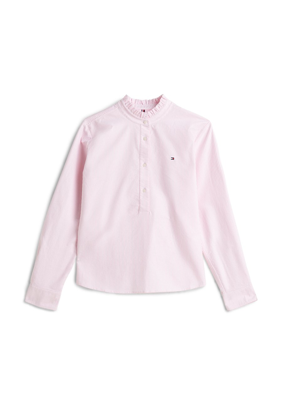 Блуза Tommy Hilfiger OXFORD RUFFLE NECK, Classic Ithaca Stp Mid Pink/Pink