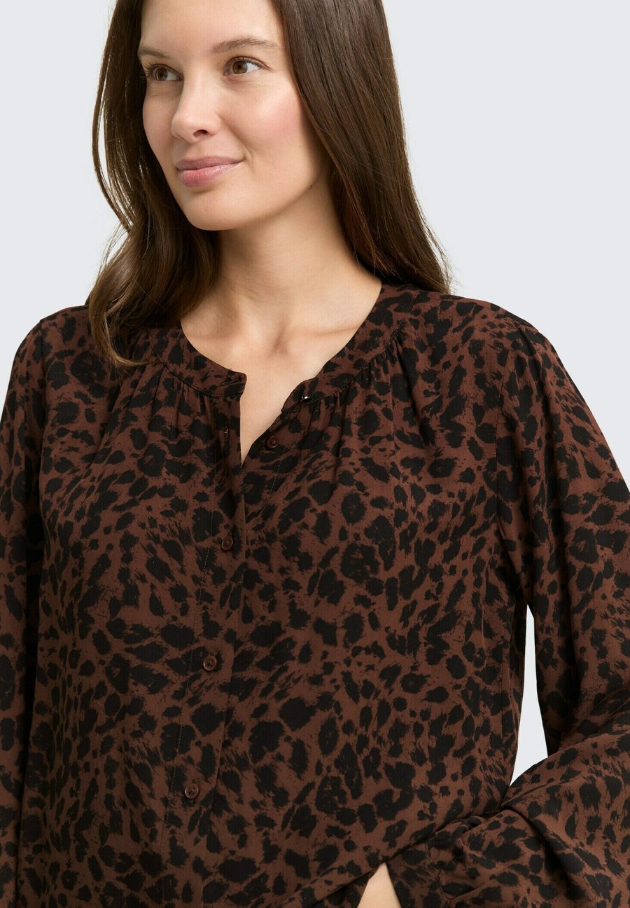 Блуза TOM TAILOR MIT LEO-PRINT, Brown Black Small Leo Print/Brown