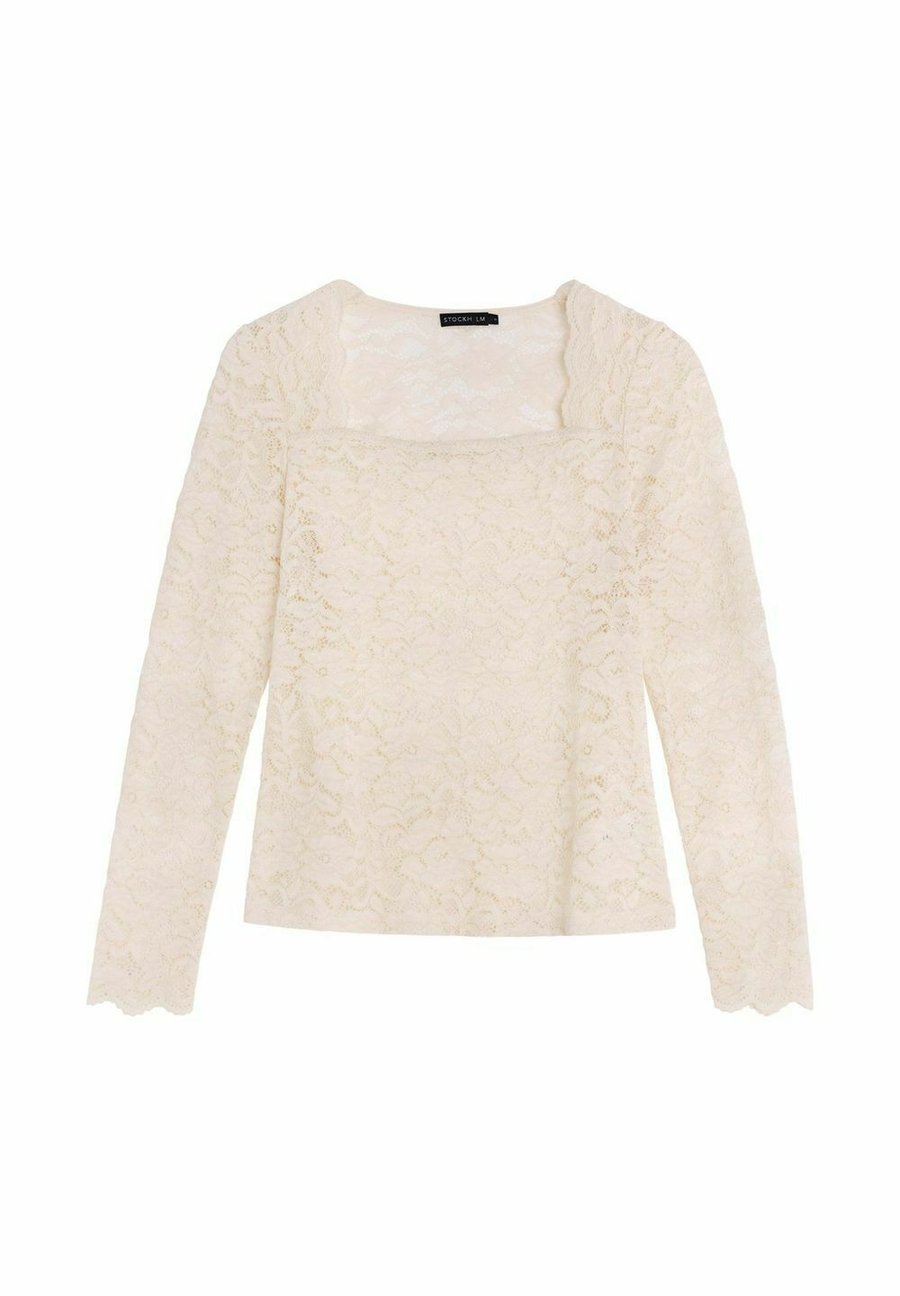 Топ Leona от Stockh lm - это элегантный кружевной топ с длинными рукавами, прямым вырезом и облегающим кроем. Изготовлен из цветочного кружева с фигурными краями рукавов для женственного и утонченного образа. Носите Leona поверх майки или бралетта - идеально сочетается с джинсами, классическими брюками или юбкой. Доступно в двух цветах. Вырез горловины: КвадратныйМатериал и уход