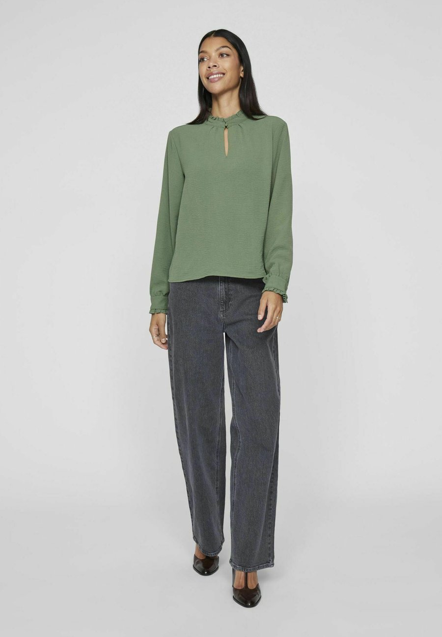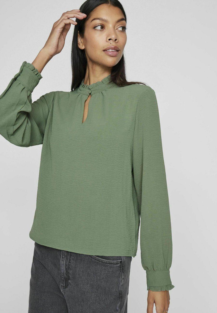 Блуза VILA MIT LANGEN ÄRMELN HIGH NECK, Laurel Wreath/Mottled Green