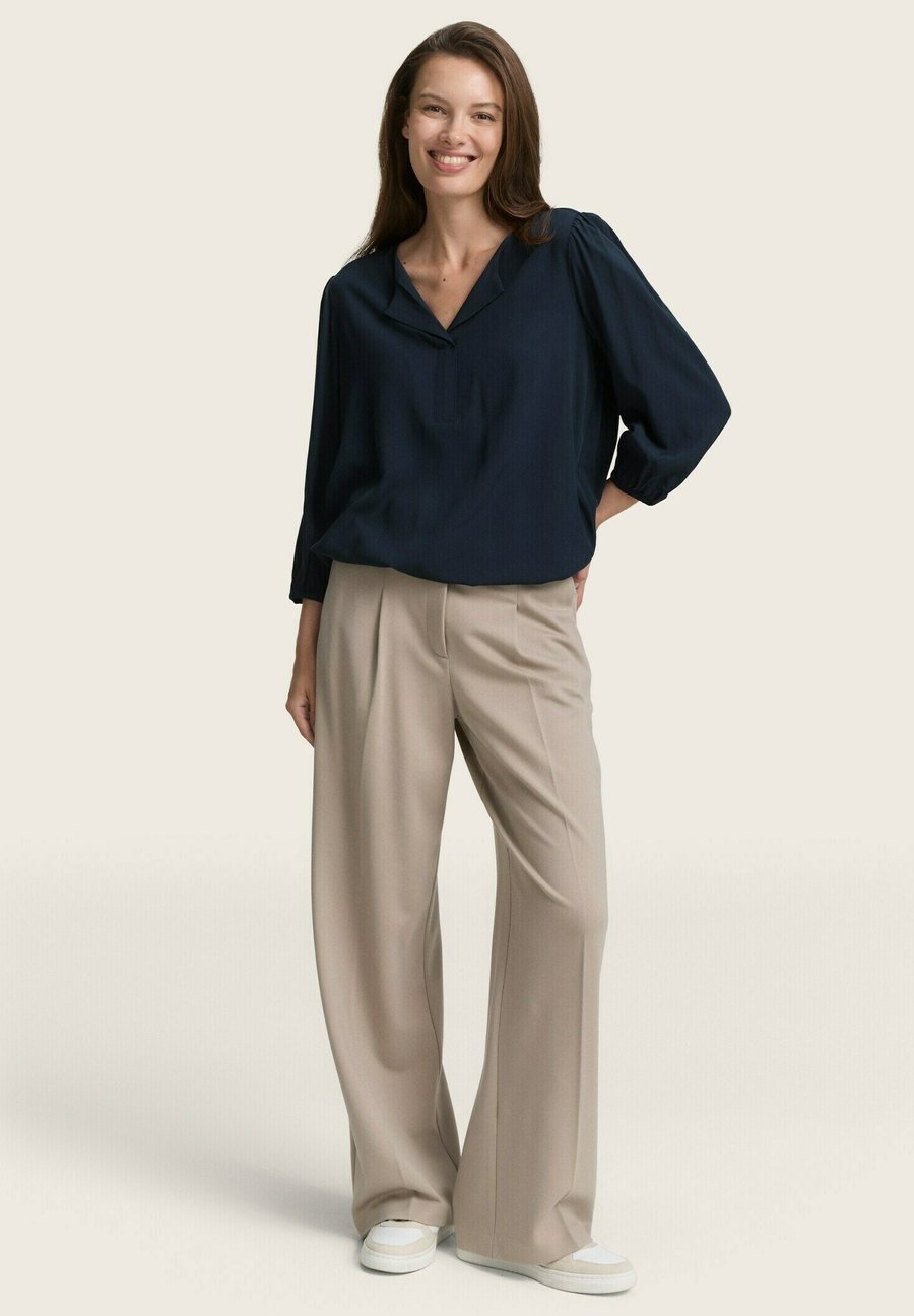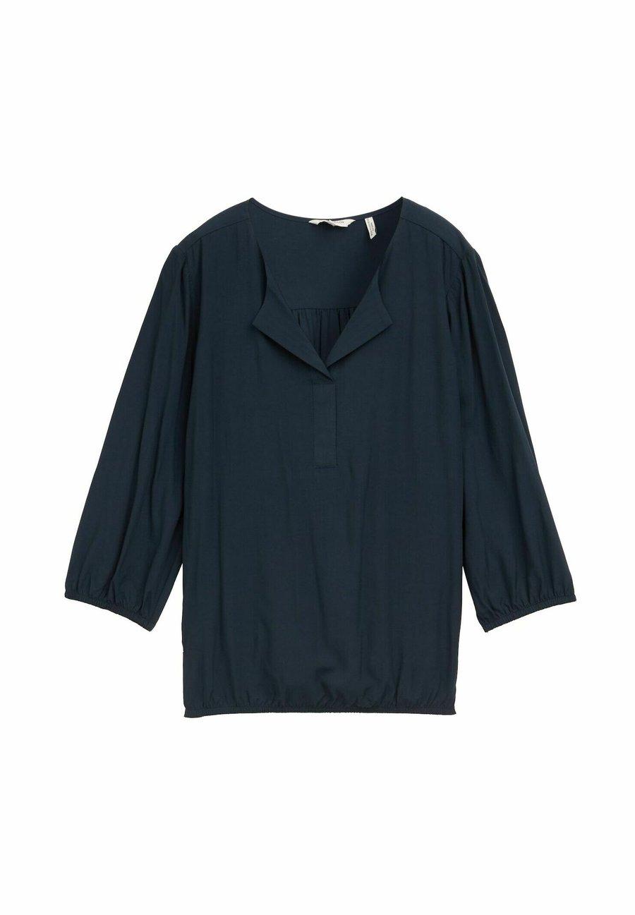 Вискоза, блузка с рукавами 3/4 и V-образным вырезом. С эластичным поясом по низу и небольшими сборками на плечах и спине. Вырез: V-образныйМатериал и уход