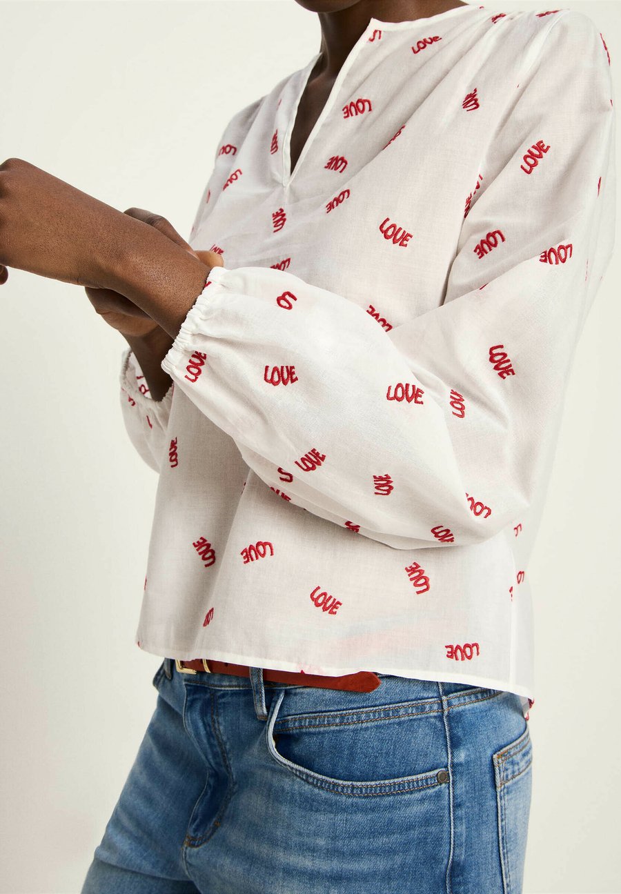 Блуза LANIUS LANGARM MIT KRÄUSELN, Off White Love/Off-White