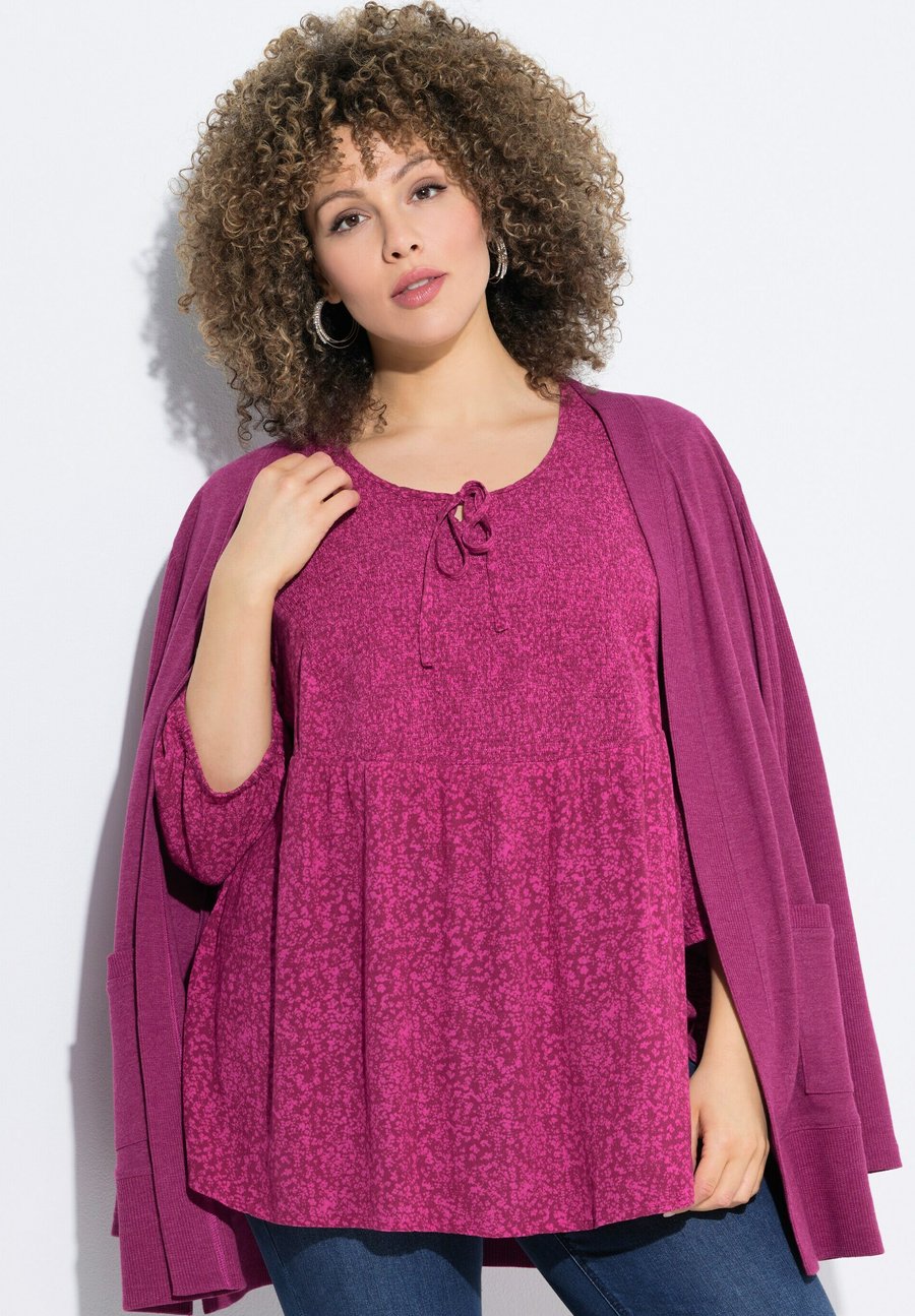 Блуза Ulla Popken 3/4 SLEEVE SMOCKED, Magnolia Red/Red