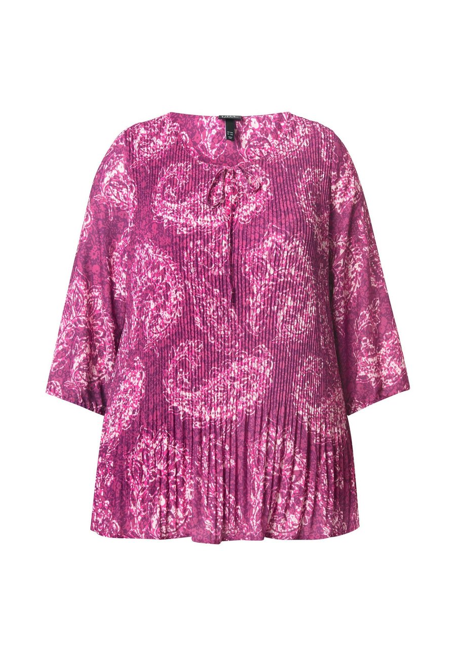 Блуза Ulla Popken ALLOVER PLEATED 3/4 SLEEVE FLORAL, Raspberry/Berry