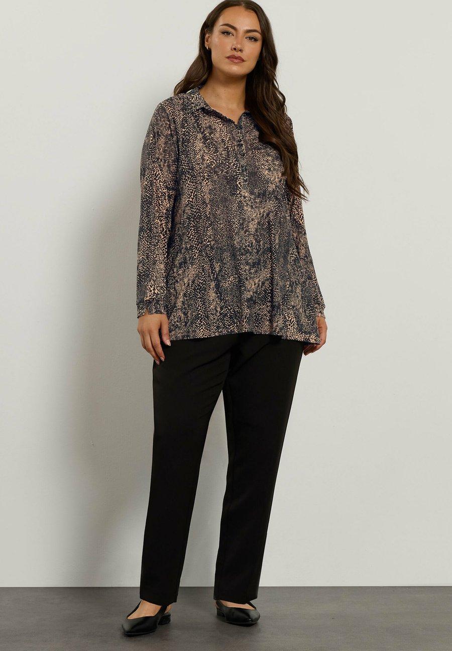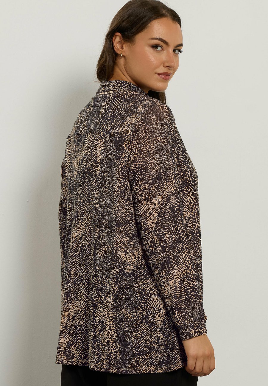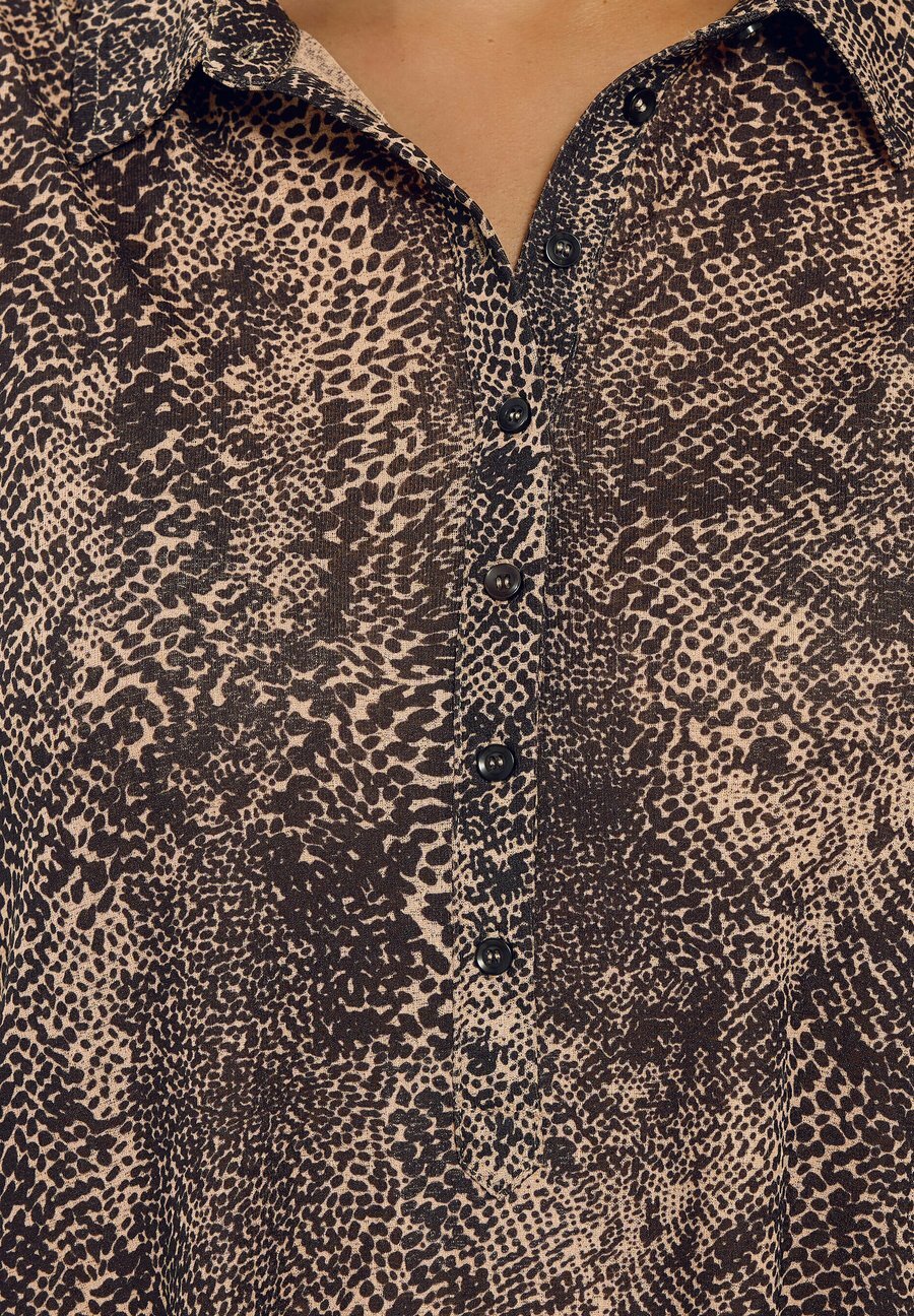 Рубашка с анималистическим принтом и полупланкой. Воротник: Рубашечный воротник.Материал и уход