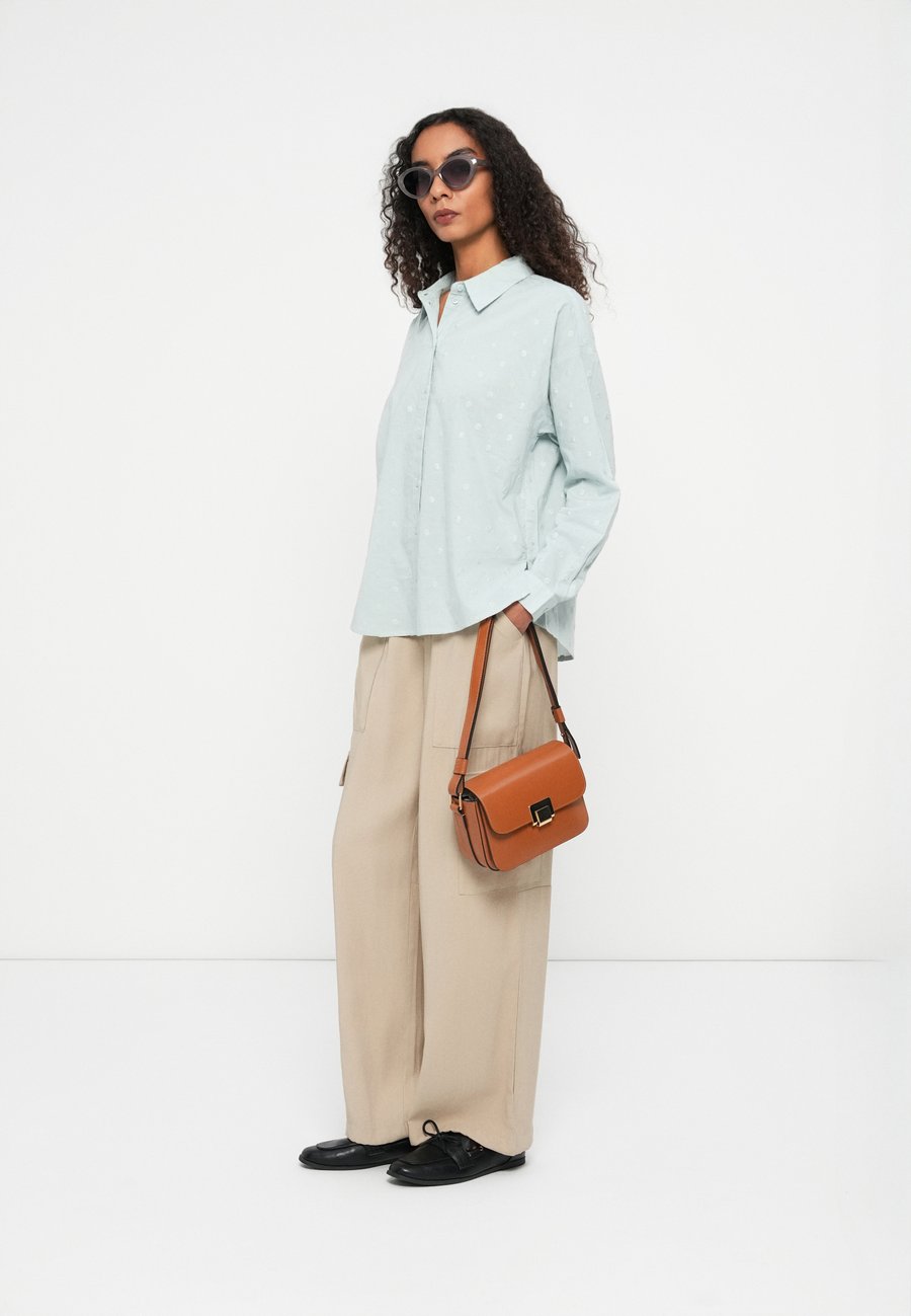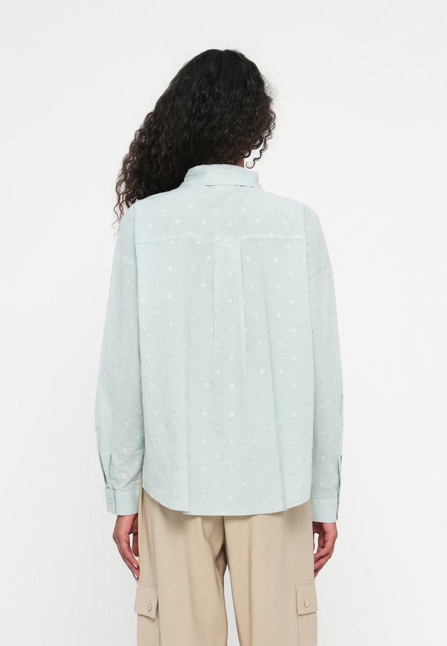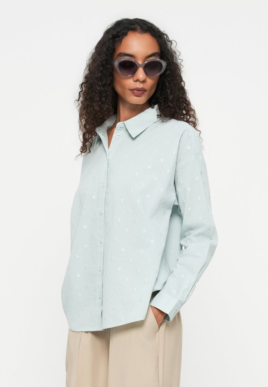 Блузка-рубашка с вышивкой в горошек в тон ткани. Слегка выкроенный плечевой шов и короткие боковые разрезы. Изготовлено из тканого хлопка. Воротник: Рубашечный воротникМатериал и уход