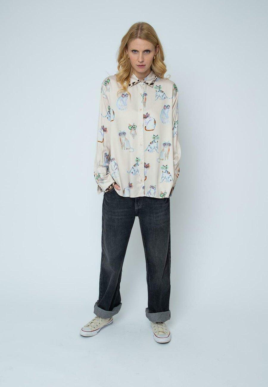 Блуза Emily van den Bergh Button-down blouse, Sand Multi Cats/Beige