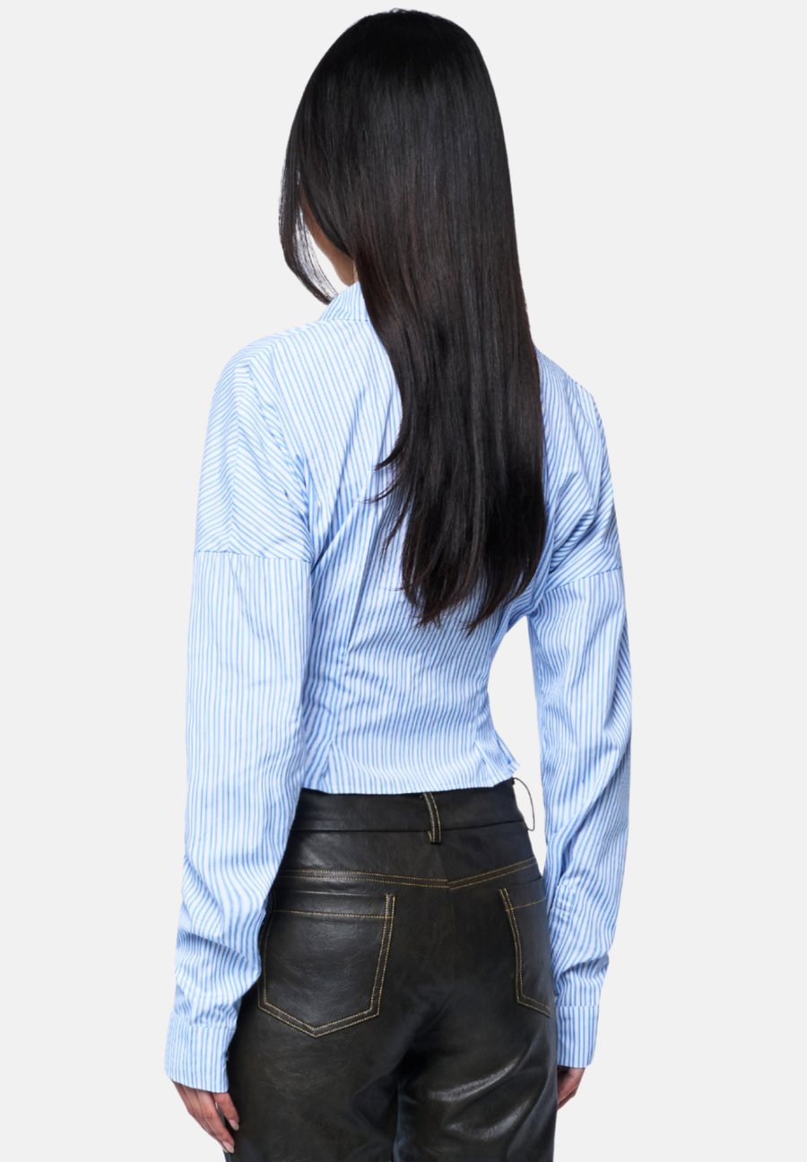 Рубашка ELIZA - это современная интерпретация классической рубашки на пуговицах. Выполненная в светло-голубой полоску, с облегающим укороченным силуэтом, она имеет структурированную талию и удлиненные манжеты для создания непринужденно элегантного образа. Небольшие вытачки придают изделию четкость, а скрытая планка делает его лаконичным и минималистичным. Носите его с кожаными брюками, джинсами или под пиджаком - эта рубашка мгновенно превращается из элегантной в повседневную стильную. Информация: • 97% хлопок, 7% эластан • Застежка на пуговицы спереди • Манжеты на пуговицах • Сборка на талии со складками • Машинная стирка (мягкое моющее средство, гладить, не отбеливать, сушить в горизонтальном положении, не сушить в сушильной машине) Информация о модели: • Рост 175 см, размер S (EU 36, UK 8, US 4) Вырез: V-образныйМатериал и уход