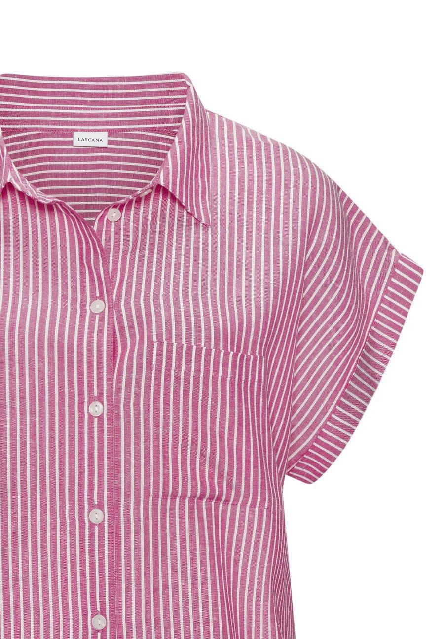 Блуза LASCANA Button-down blouse, Pink Weiß Gestreift/White