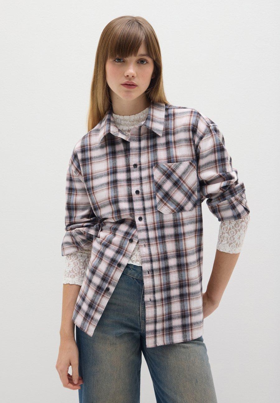 Розовая рубашка B.Angel из чистого хлопка идеально подходит для осенних и зимних дней. Ее клетчатый узор из фланели придает ей непринужденный стиль и согревает, а свободный крой обеспечивает комфортную посадку. Классическая рубашка с воротником и застежкой на пуговицы идеально подходит для создания непринужденного образа, подходящего для различных случаев. Вырез: ХенлиМатериал и уход
