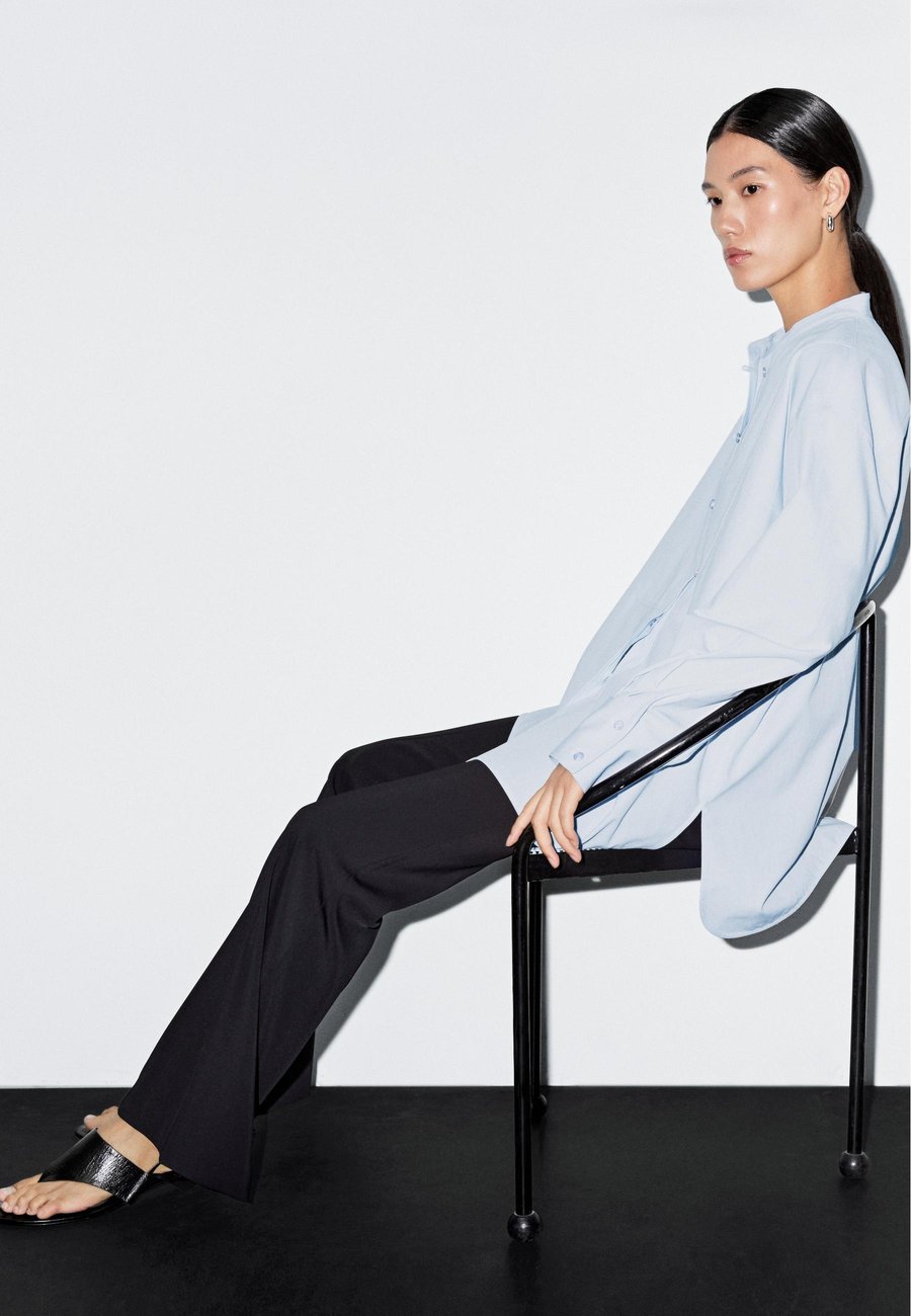 Рубашка с воротником-стойкой. Изготовлена из 100% хлопка. Длинные рукава с манжетами на пуговицах. Застежка на пуговицы спереди. Воротник: Воротник-стойкаМатериал и уход