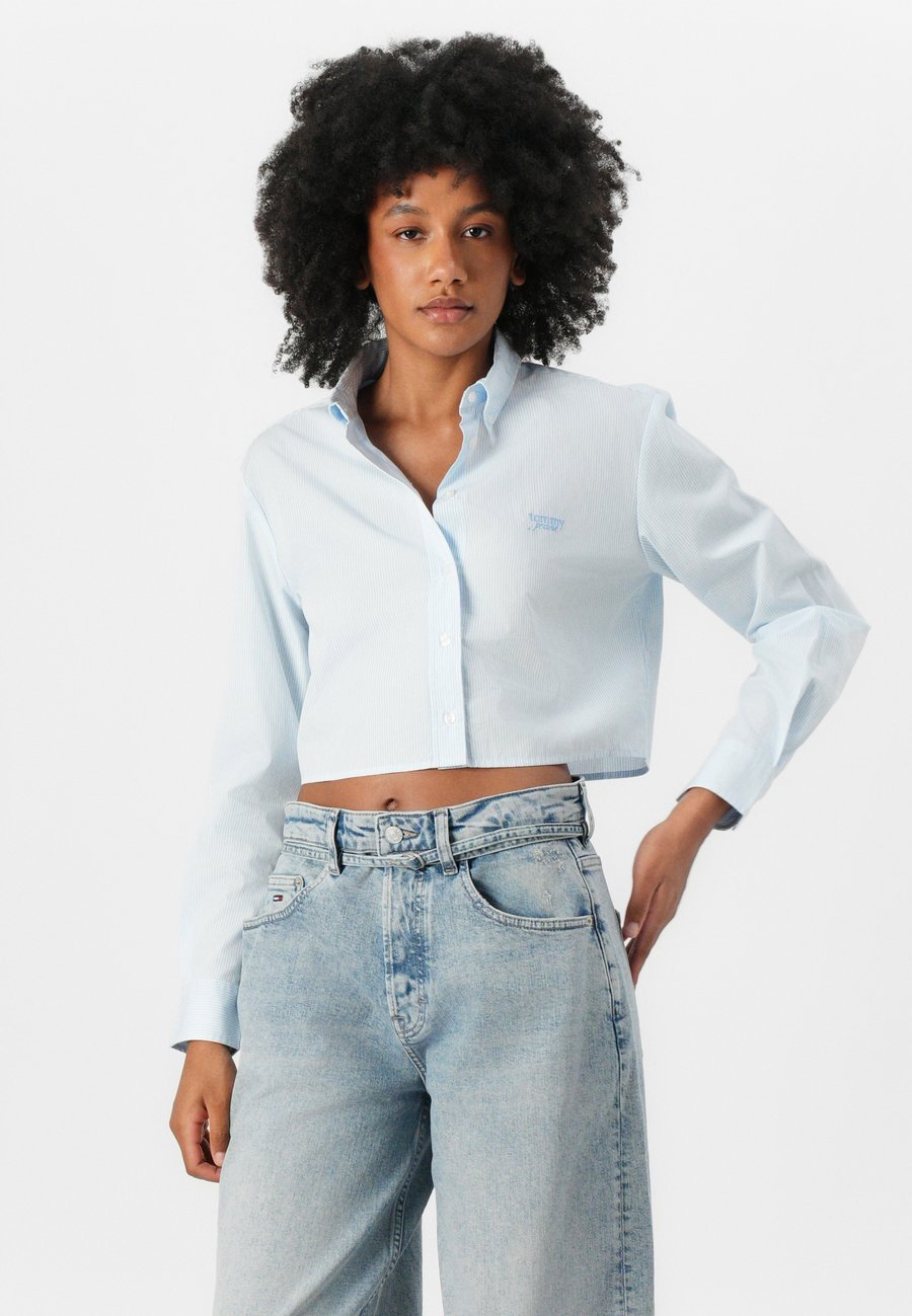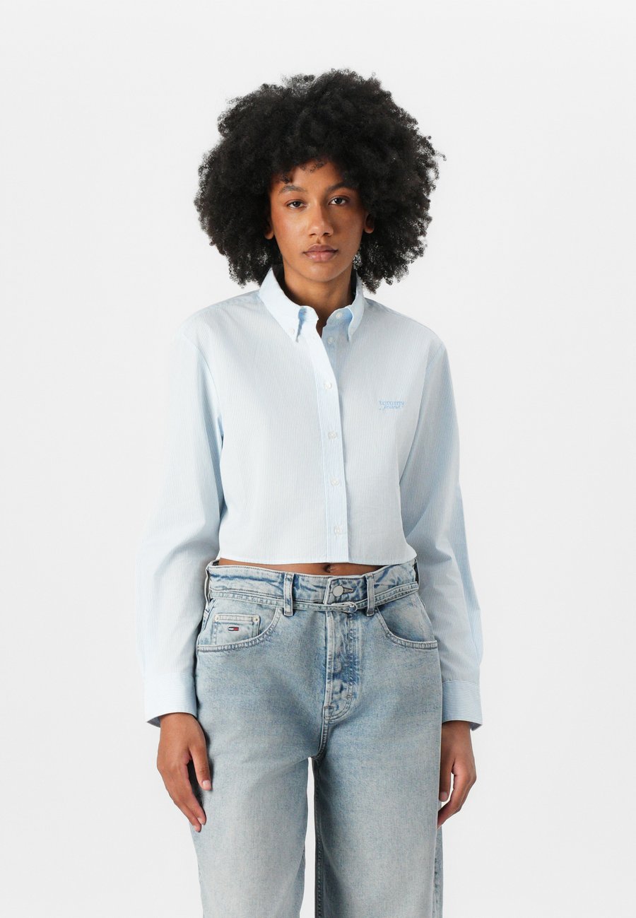 Блуза Tommy Jeans CROP STRIPE SHIRT, Light Powdery Blue/Dark Blue